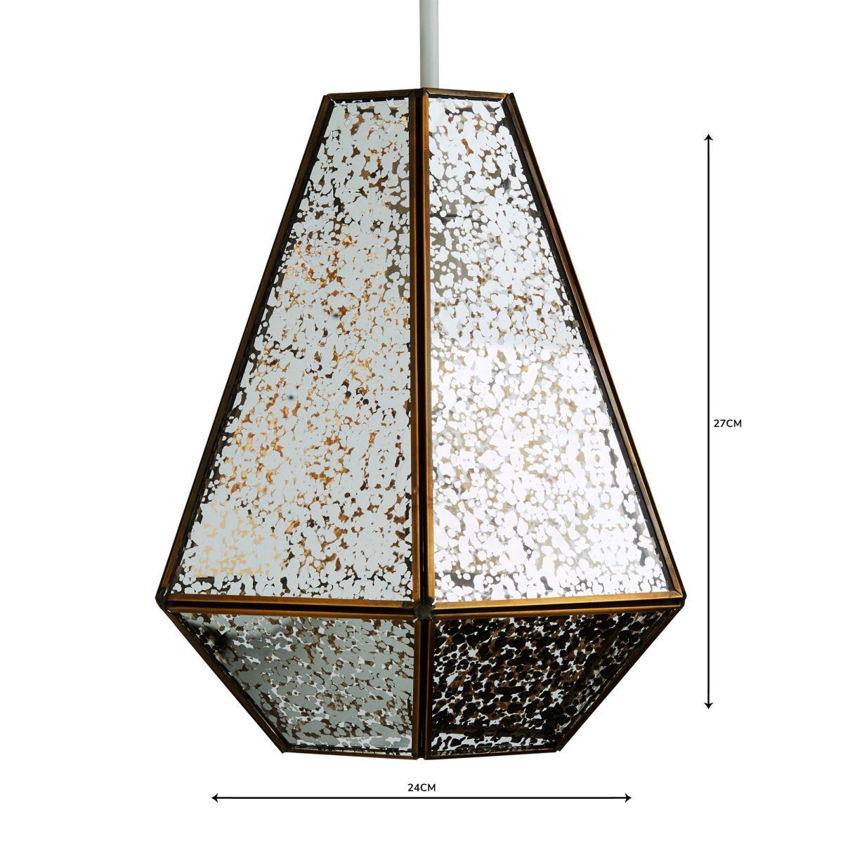 Elegantly styled in a classic diamond shape, this beautiful unwired pendant shade features distressed mercury glass finish. Suitable to use with LED lamps, this classy pendant shade is a perfect statement piece for any living space.