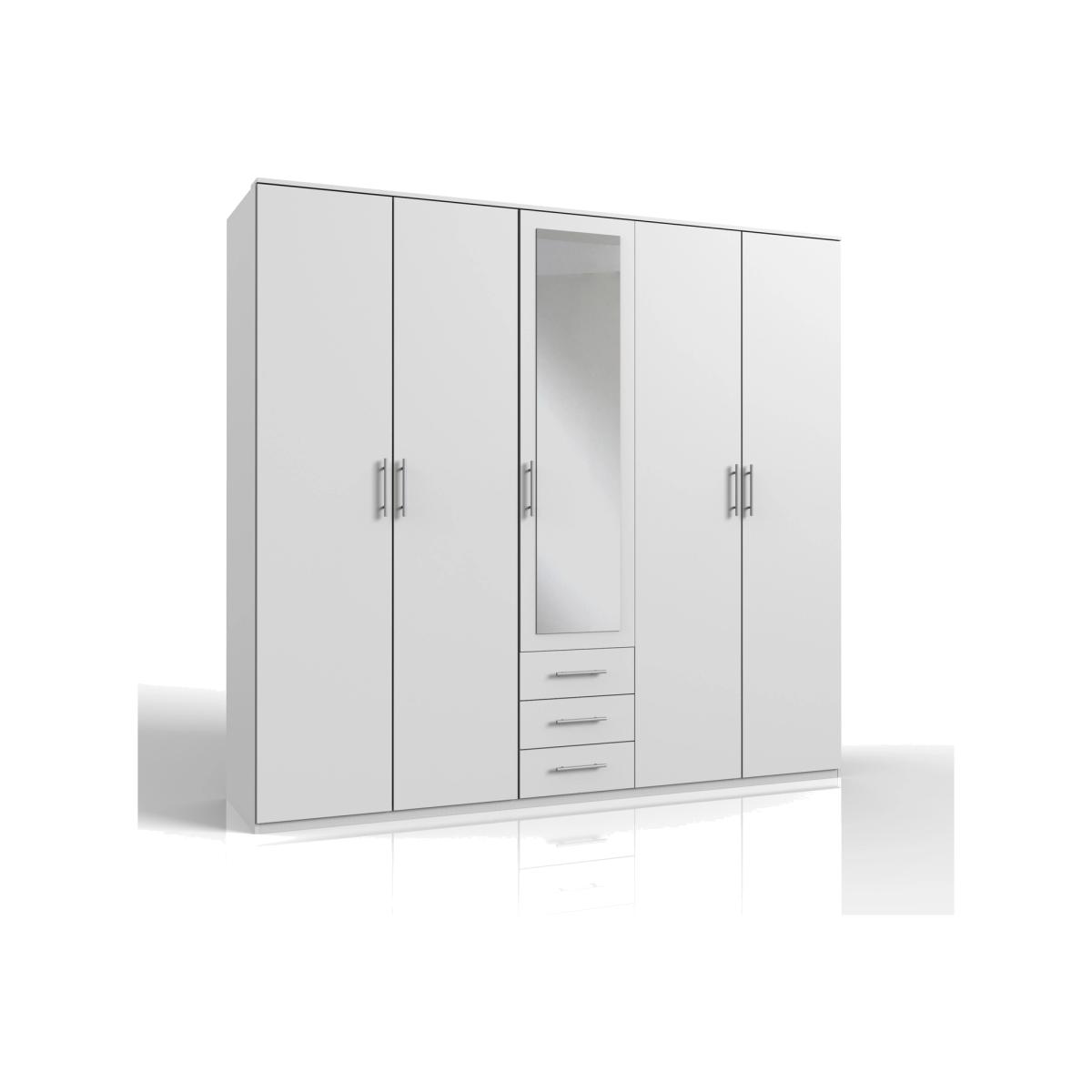 The Ben 5 Door wardrobe has a sleek and contemporary look, finished White carcase and Mirror door. The wardrobe has trendy handles which give the wardrobe a modern look. The wardrobe has 1. Large shelf and 1 Large hanging rail in outer sections, three Shelf in the Middle section and Three Drawers.