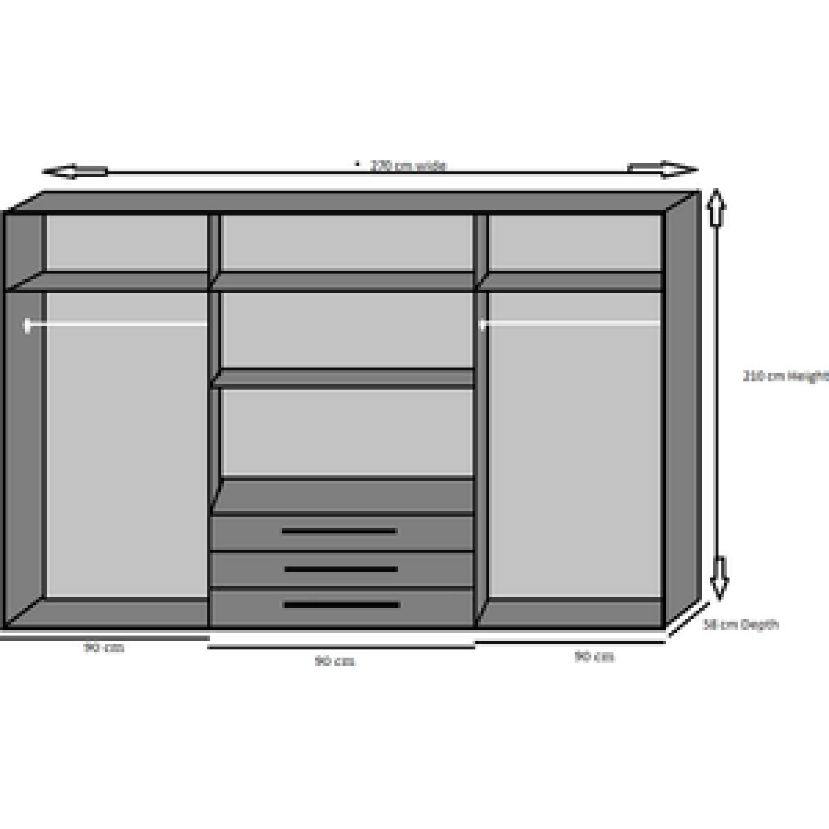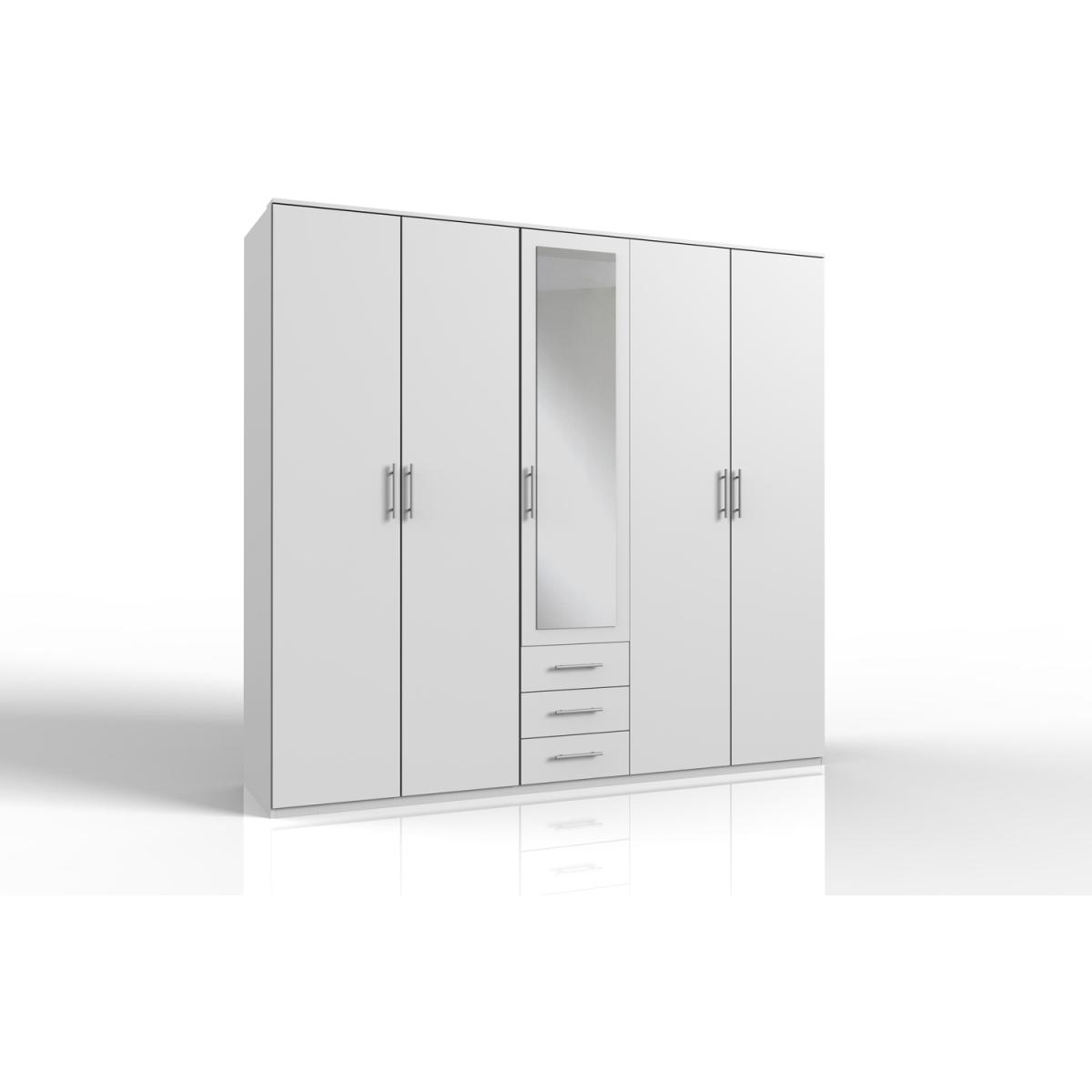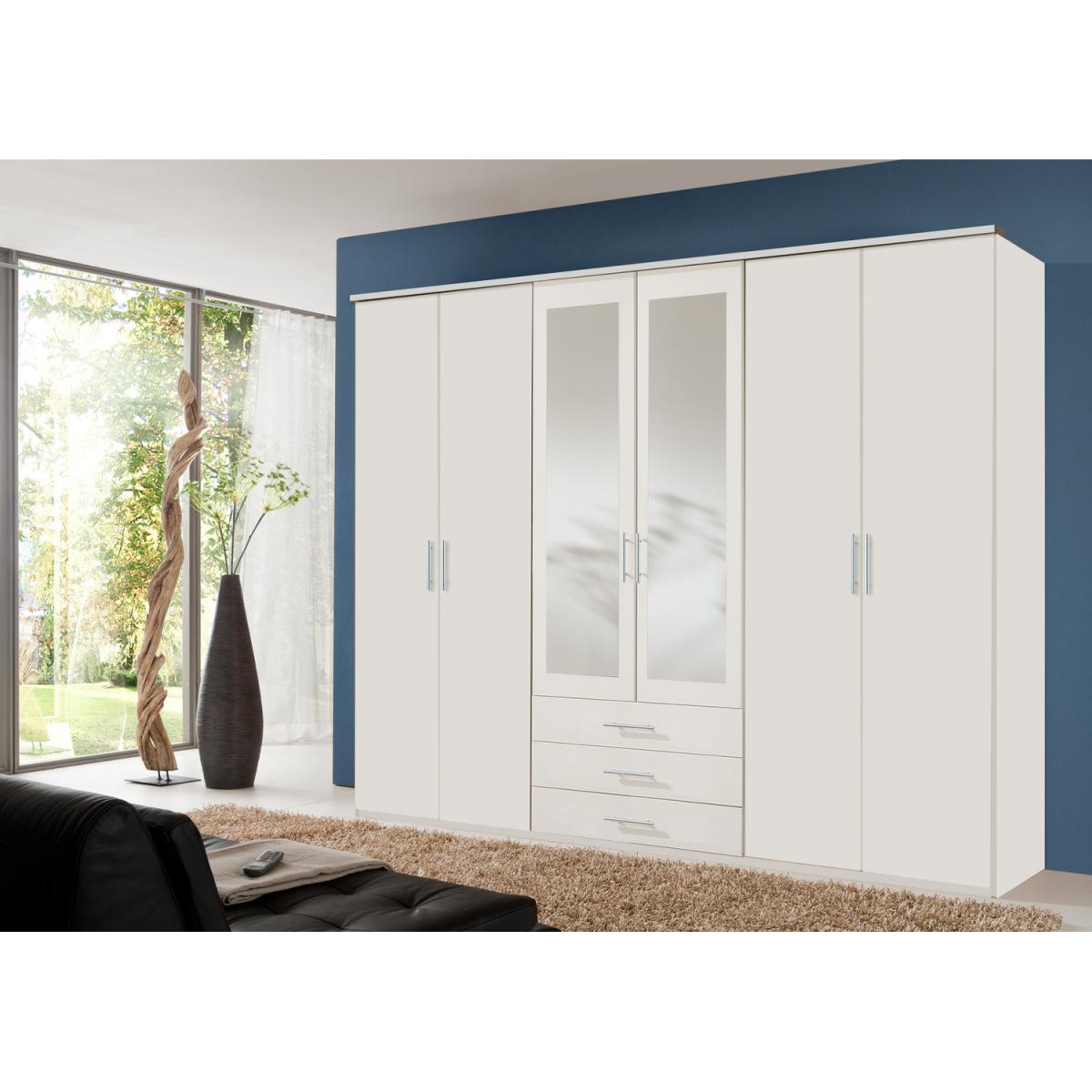 The Ben 6 Door wardrobe has a sleek and contemporary look,finished White carcase and Mirror doors. The wardrobe has trendy handles which gives the wardrobe a modern look.The wardrobe has 5 Large shelves ,2 Large hanging rail and 3 Drawers.