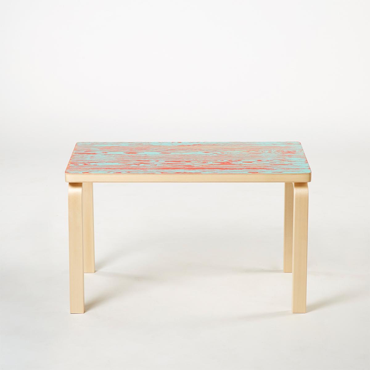 Originally designed by Alvar Aalto in 1945 and reinterpreted by Jo Nagasaka in 2019, the red and turquoise Colo Ring Bench 153. B is crafted by Artek. The design celebrates 100 years of strong diplomatic relations between Finland and Japan and makes up part of Artek's FIN/JPN Friendship Collection, created in collaboration with Japanese and Finnish designers. Crafted in Finland using solid Finnish birch wood, the seat is finished with a soft-grained pine veneer and transformed using Nagasaka's innovative Colo Ring technique. Up until now, Colo Ring had involved a time-consuming, fully-manual process created by fusing the traditional Japanese techniques of Udukuri and Tsugaru-Nuri, but thanks to Artek's revolutionary manufacturing techniques, the design can now be bought to a broader audience. As revolutionary as the colourful technique adorning it, the Bench 153. B represents the pinnacle of functionalist furniture design and is characterised by its state-of-the-art curved L-leg. Created by bending a piece of birch to a curved 90° angle, the L-leg is fastened directly to the seat, thus achieving Aalto's signature streamlined and simple aesthetic. Instantly recognisable as a classic Alvar Aalto design with Jo Nagasaka's artistic flourish, the Colo Ring Bench 153. B can be used as a seat, shelving display or for storage in your hallway, bedroom or dressing room. Please note: Due to the innovative nature of the Colo Ring technique, each bench features a uniquely grained finish and therefore will not match the picture exactly.