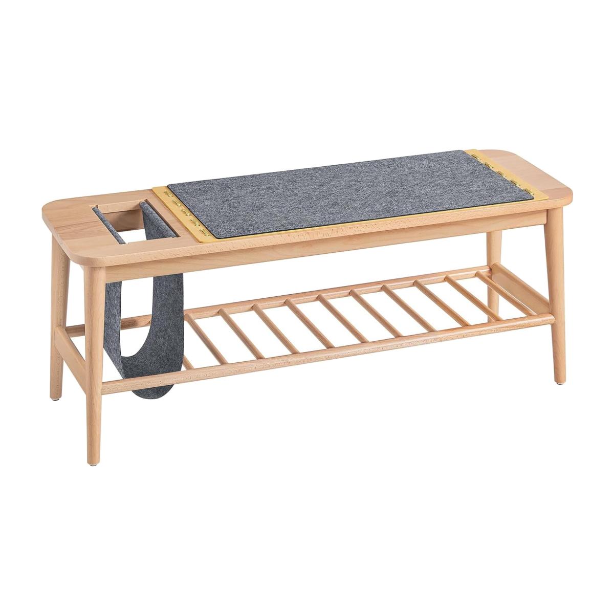 I’m a fan of this bed bench with hanging pouch for its simple, Scandi-inspired lines and practical storage. The beech-tone frame and neutral felt pouch slot neatly into modern, minimalist or Japandi bedrooms, and the lower rack is ideal for shoes, baskets or folded throws. Styling tip: layer a textured cushion or a lightweight wool throw across the top for added warmth, and use the side pocket to keep your phone or a paperback within reach. Its compact footprint makes it equally useful in a guest room or hallway as an extra seat and shoe rack.