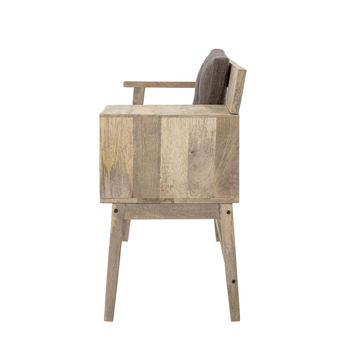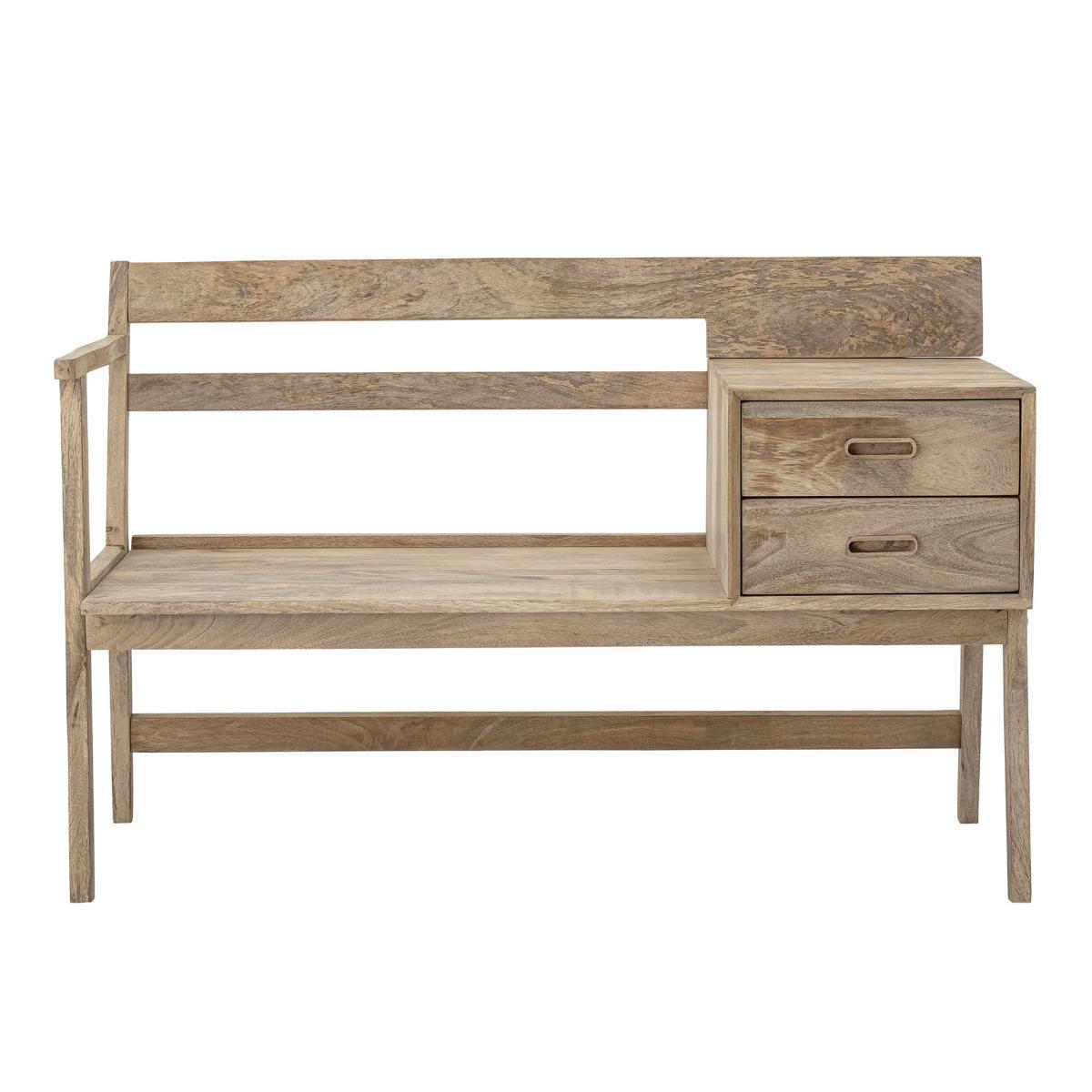 A natural and authentic style for this bench made from Mango tree wood, embellished with grey fabric cushions. Make your entrance the window to your home, by providing it with comfort and betting on furniture that is as practical as it is good-looking. This bench lets you take it easy while taking off your shoes. You can place a trinket bowl on the shelf for keys, a lamp, a decorative object, etc. And the two drawers will let you hide your mess. This bench will be at home anywhere in the house: a lounge, a bedroom, a dressing room, etc.