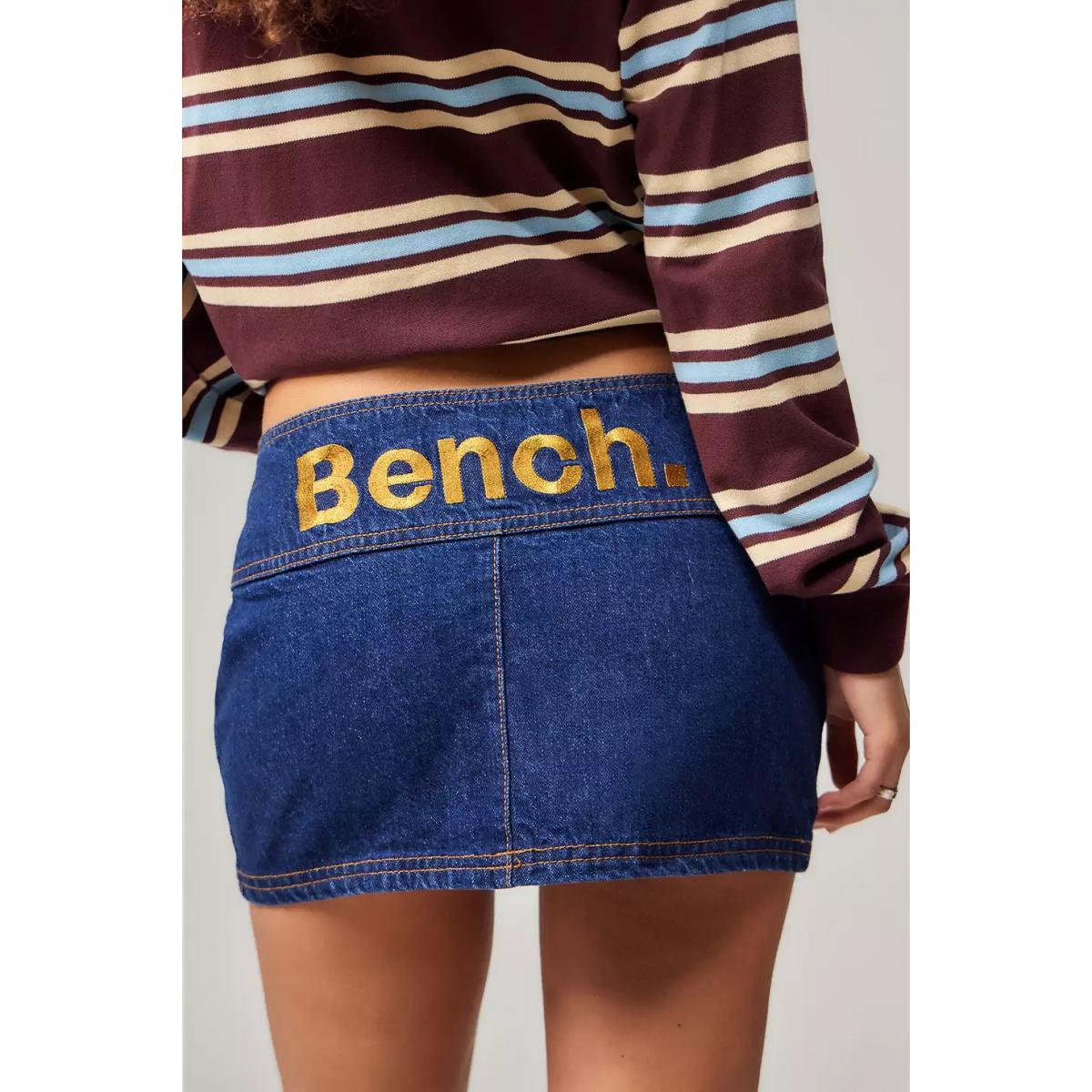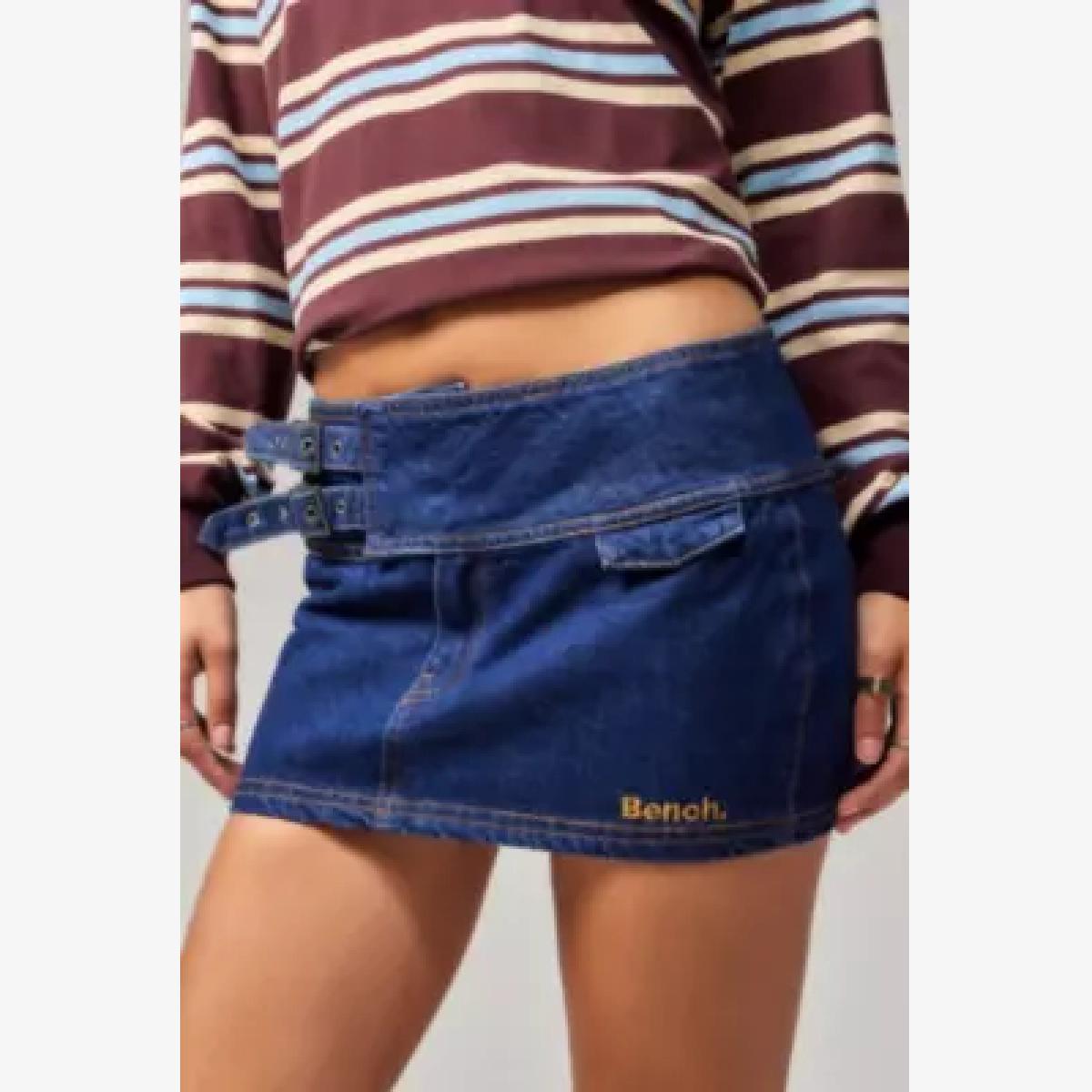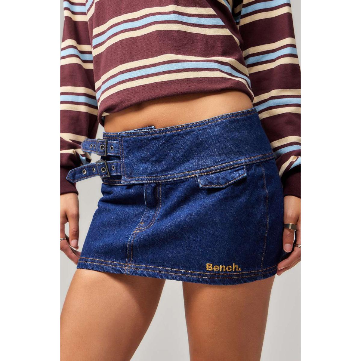Extra 00s denim mini skirt from Bench. Cut from dark-rinse denim with a low-rise waist, slim fit and mini hem. Topped with a statement buckle belt and logo print to the hem. Only at UO. **Content + Care** \- 100% Cotton \- Machine wash **Size + Fit** \- The model is wearing a size Small \- Use our size guide to check how this product fits