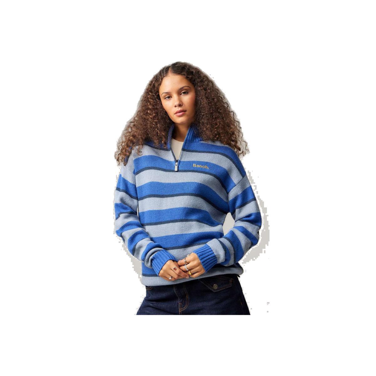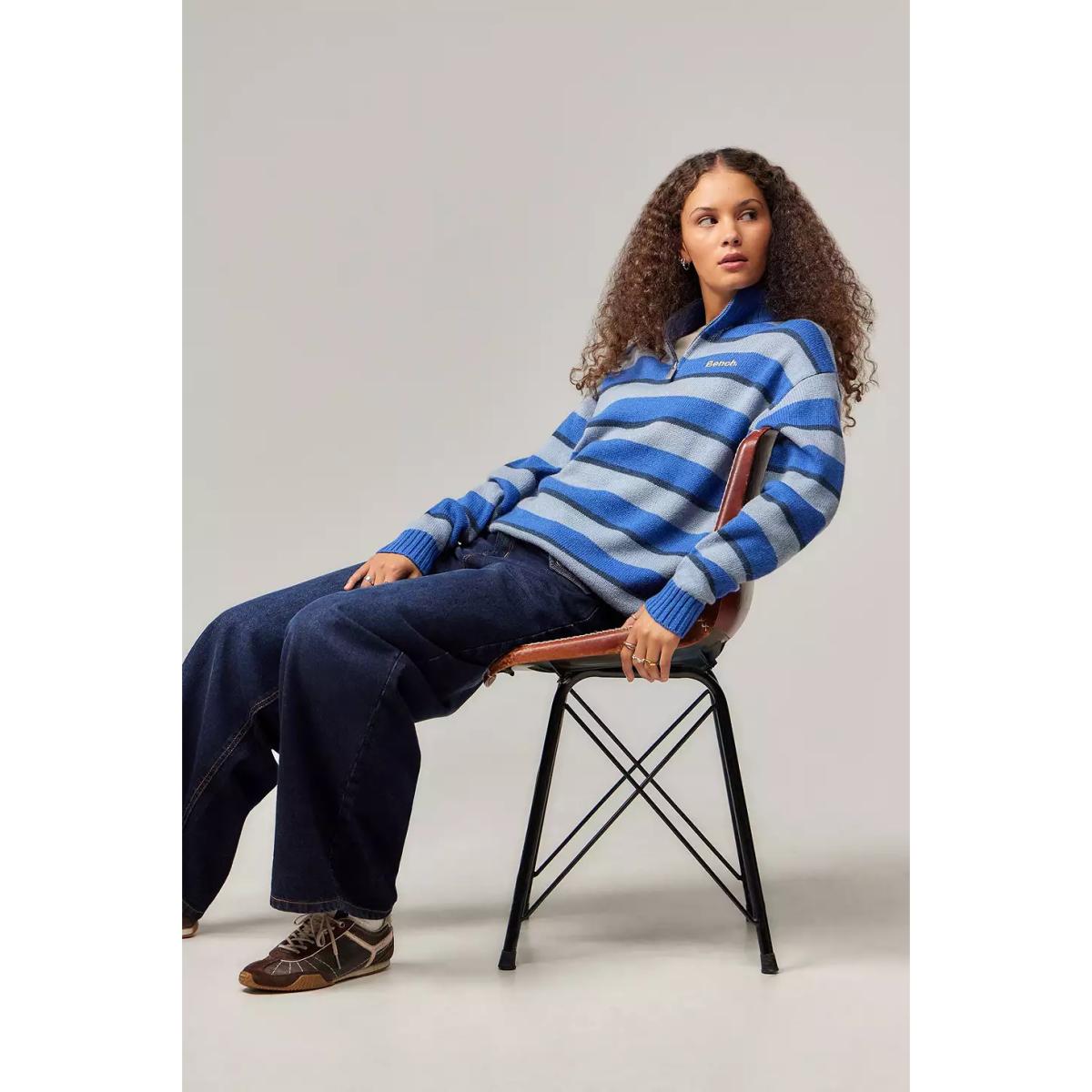 Classic quarter-zip from Bench. Stripey knit construction with a funnel neck, half-zip placket, drop shoulders and long sleeves with ribbed trims. Finished with a logo badge to the chest. Only at UO. **Content + Care** \- 85% Acrylic, 15% Wool \- Machine wash **Size + Fit** \- Use our size guide to check how this product fits \- The model is wearing a size Small
