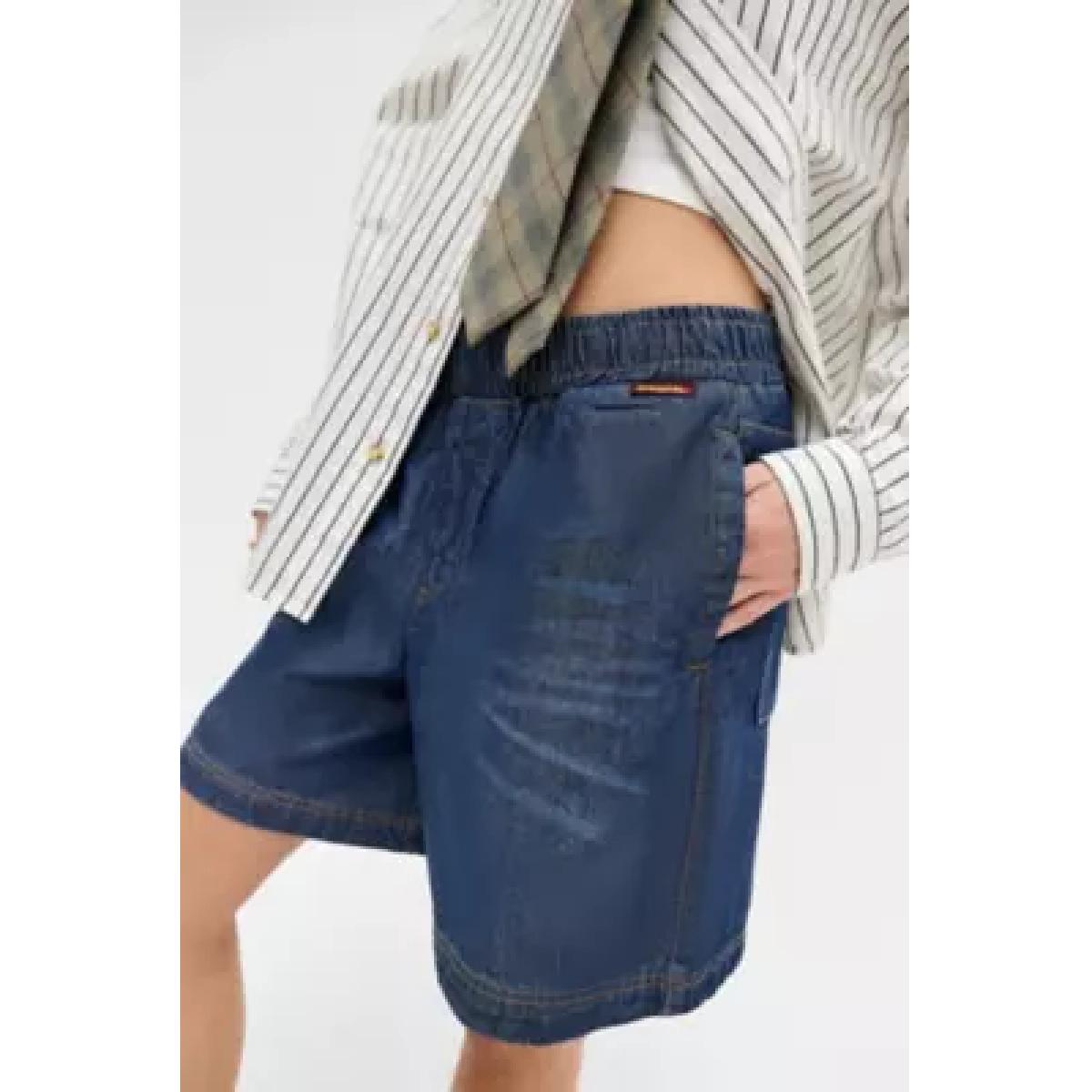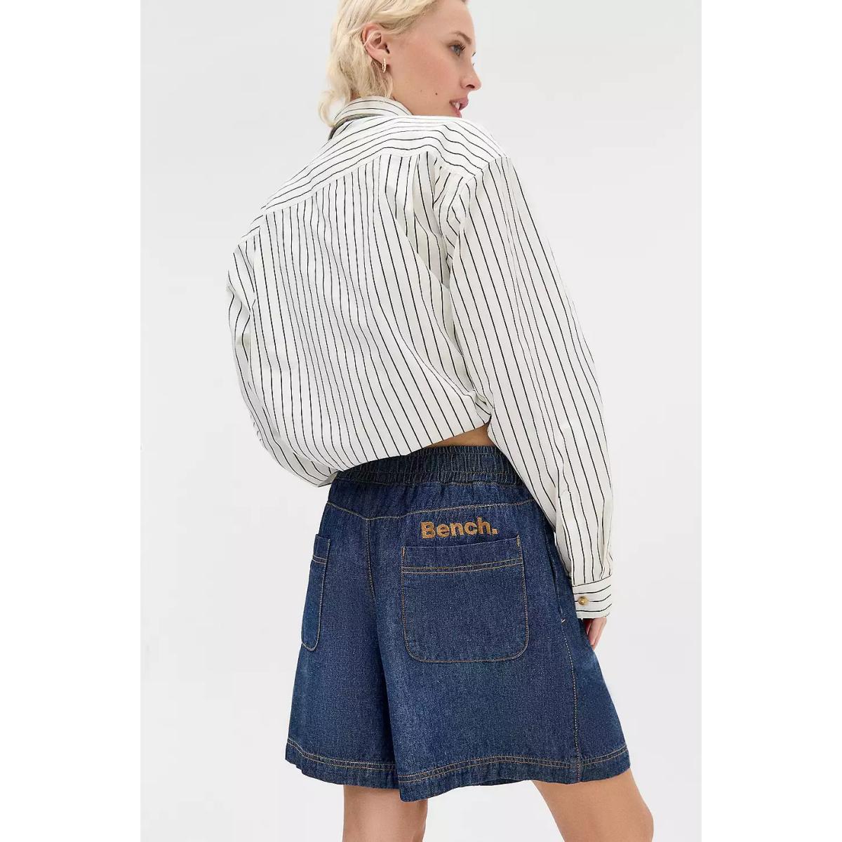 Relaxed denim shorts from Bench to add to your collection. Baggy, wide-leg style complete with a comfy elasticated waist, two side pockets, two back pockets, whiskering detail at the thighs, contrast stitching and an embroidered logo to back. Only at Urban Outfitters. **Content + Care** \- 98% Cotton, 2% Elastane \- Machine wash **Size + Fit** \- The model is wearing a size Small \- Use our size guide to check how this product fits