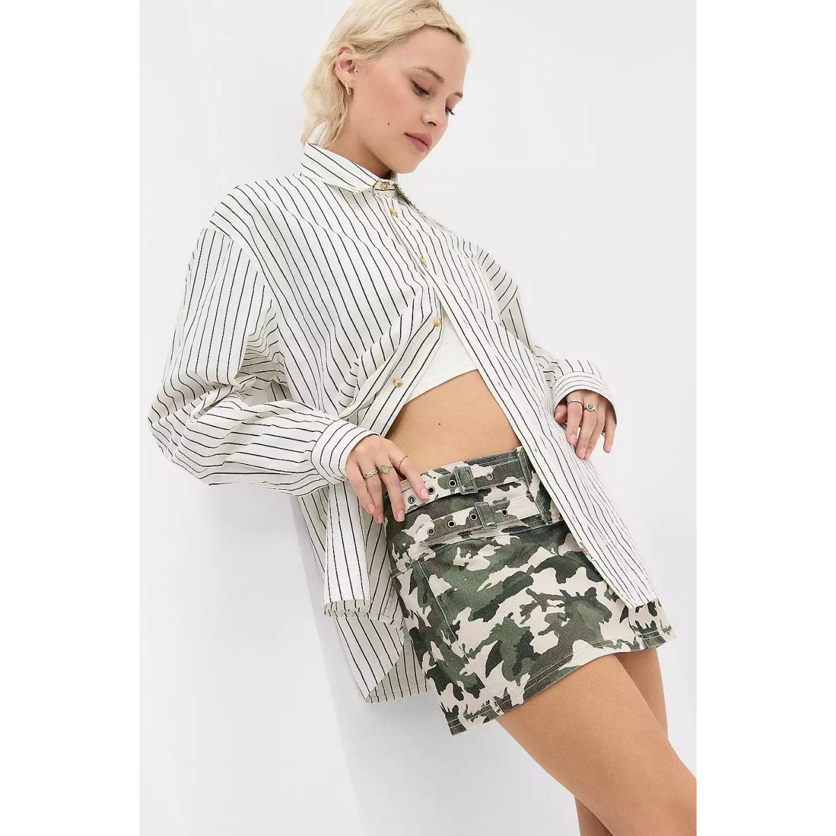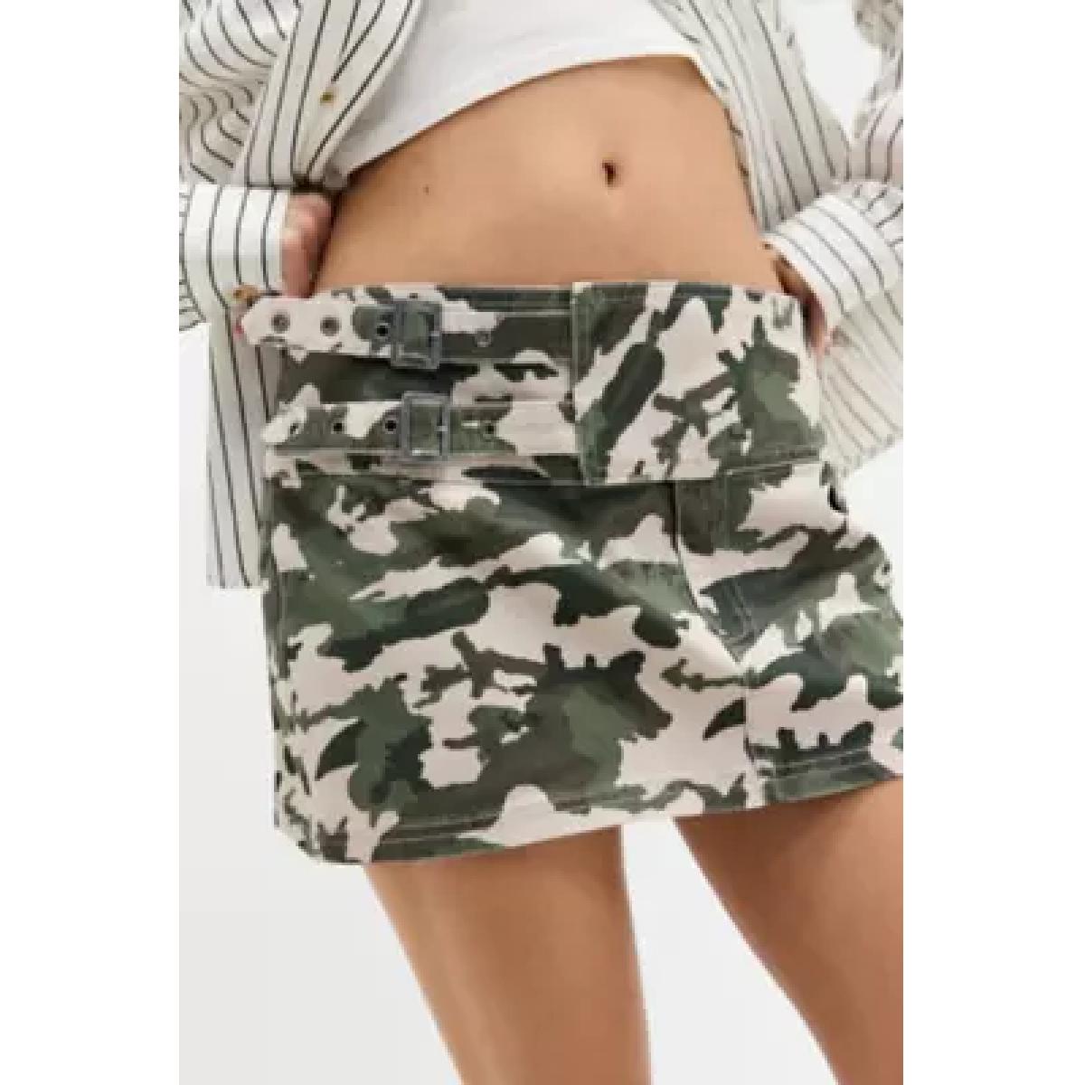 A camo pattern tops this mini skirt from Bench. Low-rise style, complete with two buckled straps to one side and an embroidered logo to back. UO exclusive. **Content + Care** \- 98% Cotton, 2% Lycra \- Machine wash **Size + Fit** \- Use our size guide to check how this product fits \- The model is wearing a size Small