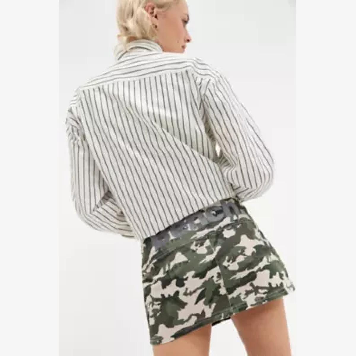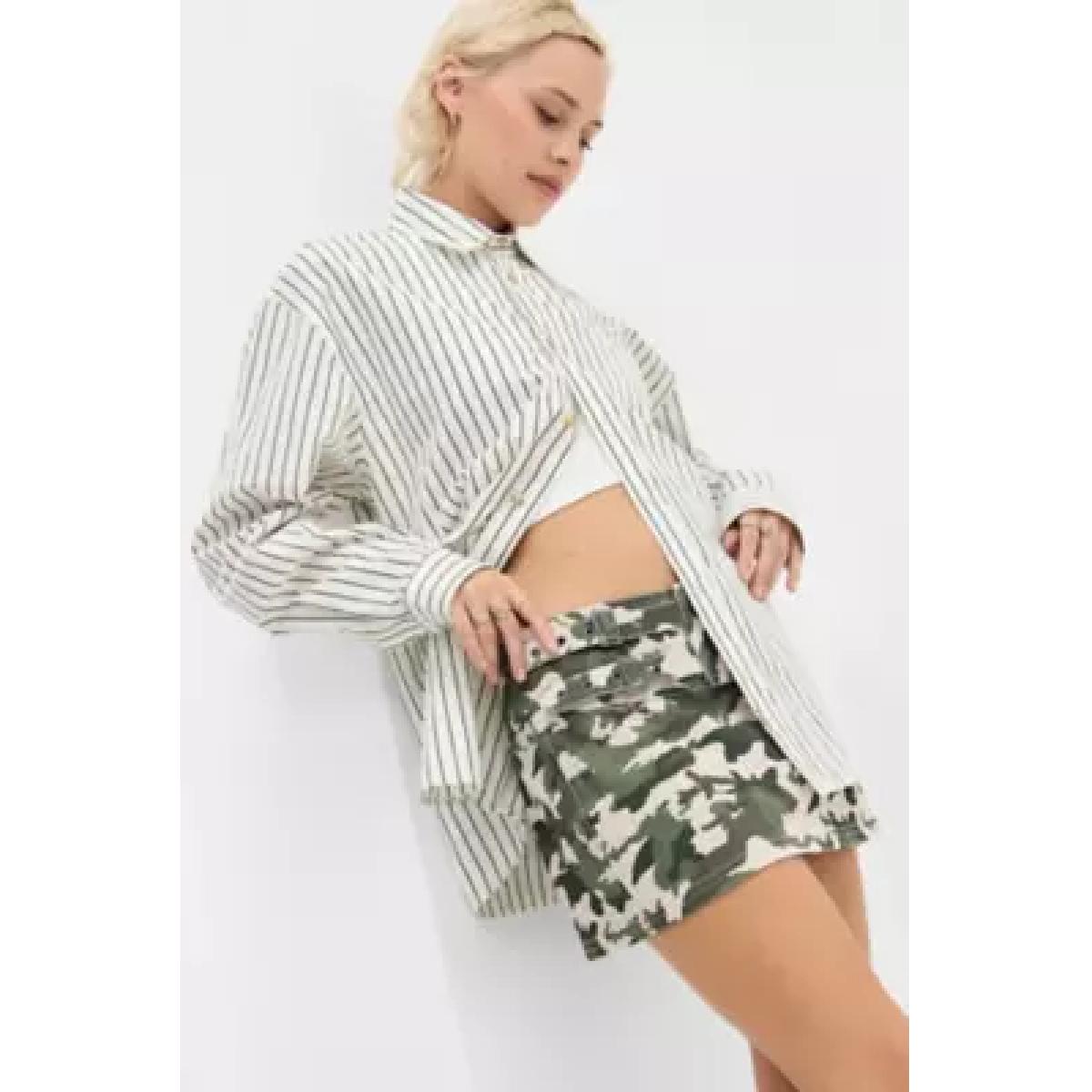 The UO exclusive camo mini skirt actually works surprisingly well as a bench design, especially in modern or urban-themed interiors. Its utilitarian vibe lends itself to industrial or minimalist spaces, where the camo pattern can add a touch of edge. I love pairing it with furniture or accessories in neutral tones like black, grey, or khaki to echo its colour palette. Practical styling tips include using it as a statement piece on a sleek, simple bench or stool - perhaps with a seat cushion in a coordinating neutral or a textured fabric to balance the pattern. It’s also worth considering how the skirt's edgy aesthetic could inspire playful or contrasting elements in the surrounding decor, creating a cool, cohesive look.