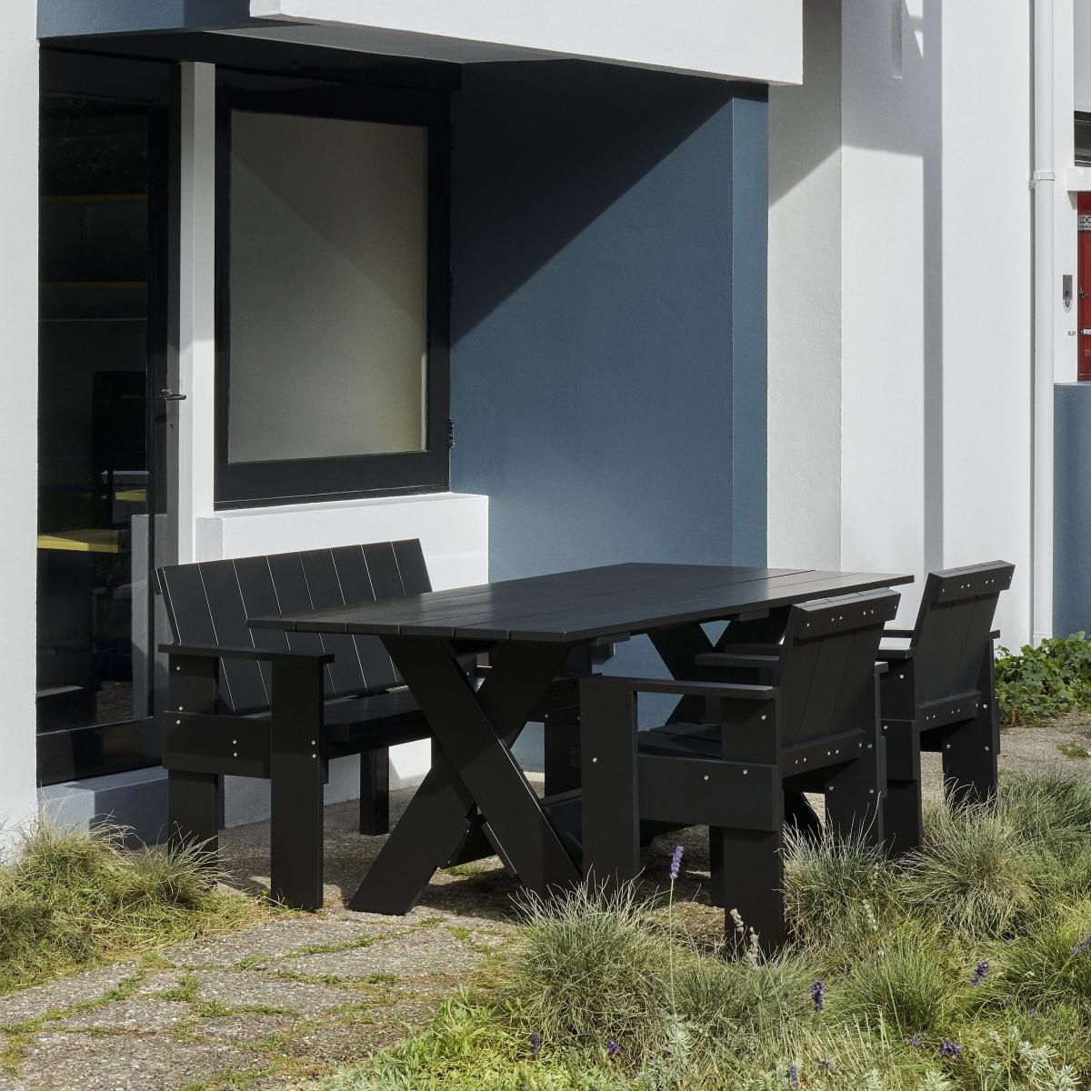 The Crate Outdoor bench with backrest can be accessorised with a seat cushion, sold separately (cushion NOT INCLUDED). A design icon revisited ! The Crate armchair was created in 1934 by design legend Gerrit Rietveld. The item entered the history of world design. Avant-garde Dutch architect and designer GERRIT RIETVELD was one of the first to take an interest in the industrial production of furniture. In 1934, under the influence of the De Stijl artistic movement, RIETVELD sought to combine pure forms and primary colours. He created the Crate Chair: the first piece of furniture made from simple reclaimed wooden crates. A raw aesthetic for this armchair made of an assembly of rectangular wooden planks simply screwed together. From 1934, this armchair was sold as a self-assembly kit and was available in different colours: a totally revolutionary concept for the time. The simplicity of shapes and materials launched the Poor Art style. In 2023, the descendants of GERRIT RIETVELD, in collaboration with Danish brand Hay, have decided to reissue Crate Chair and produce a complete outdoor collection based around the original model. Produced by Hay, the Crate collection is made of solid pine treated with a water-based exterior lacquer. Hay immediately knew that this collaboration had unique potential, making these Dutch design icons once again available for our gardens and terraces. Respect for these timeless designs is the cornerstone of this inspiring project.