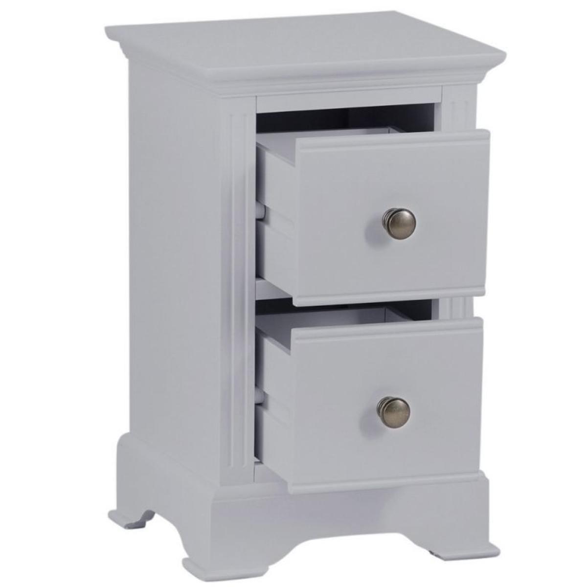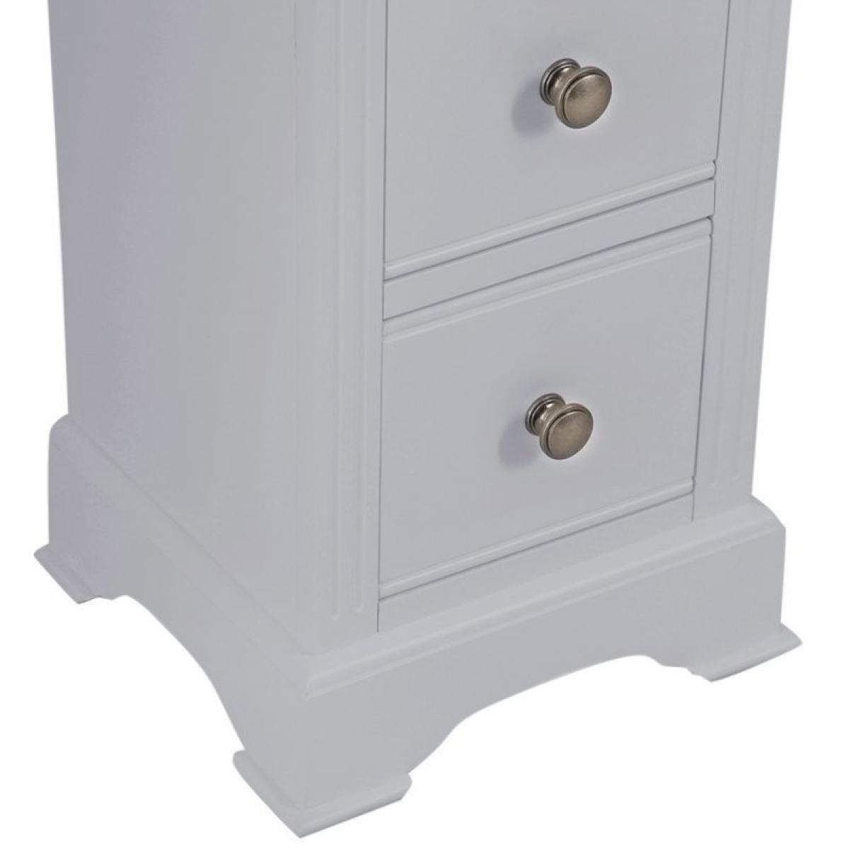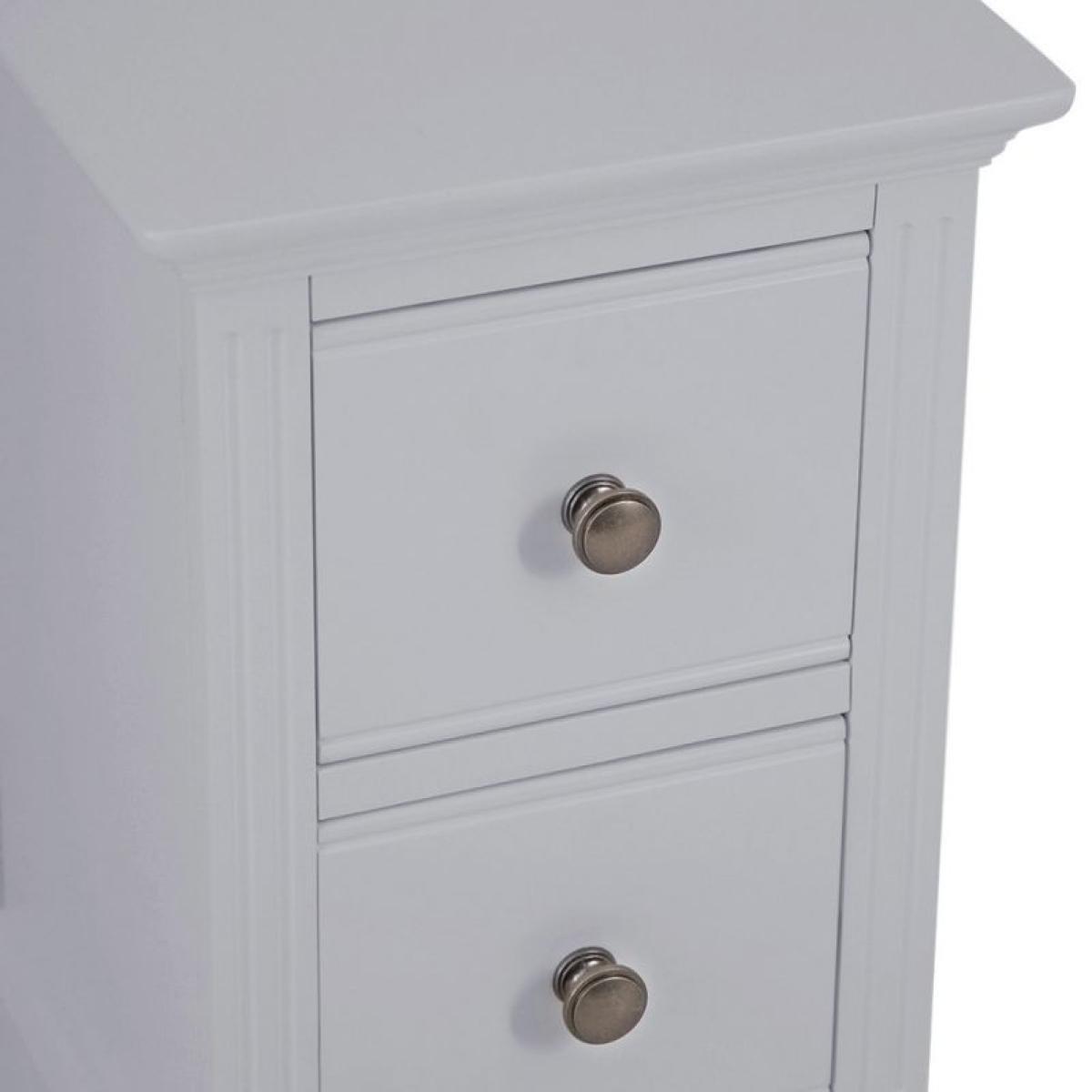I love this bedside table’s sleek, grey finish which offers a versatile look that suits both modern and traditional interiors. Its two drawers provide practical storage for essentials like books, glasses, or chargers, keeping the bedside clutter-free. It works particularly well in Scandi, contemporary, or minimal schemes, but can also add a touch of sophistication to classic or coastal spaces. For styling, I recommend pairing it with a simple table lamp, a small decorative object, or a stack of favourite books to create a balanced bedside vignette. The neutral colour makes it an adaptable piece that can effortlessly complement various colour palettes and textures.