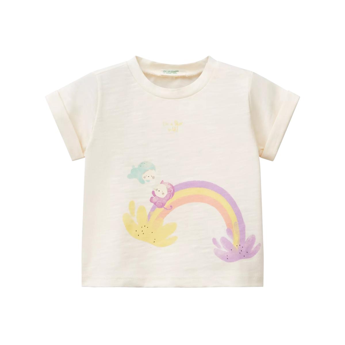 Benetton Baby Cotton Rainbow Short Sleeve Top, White Cream