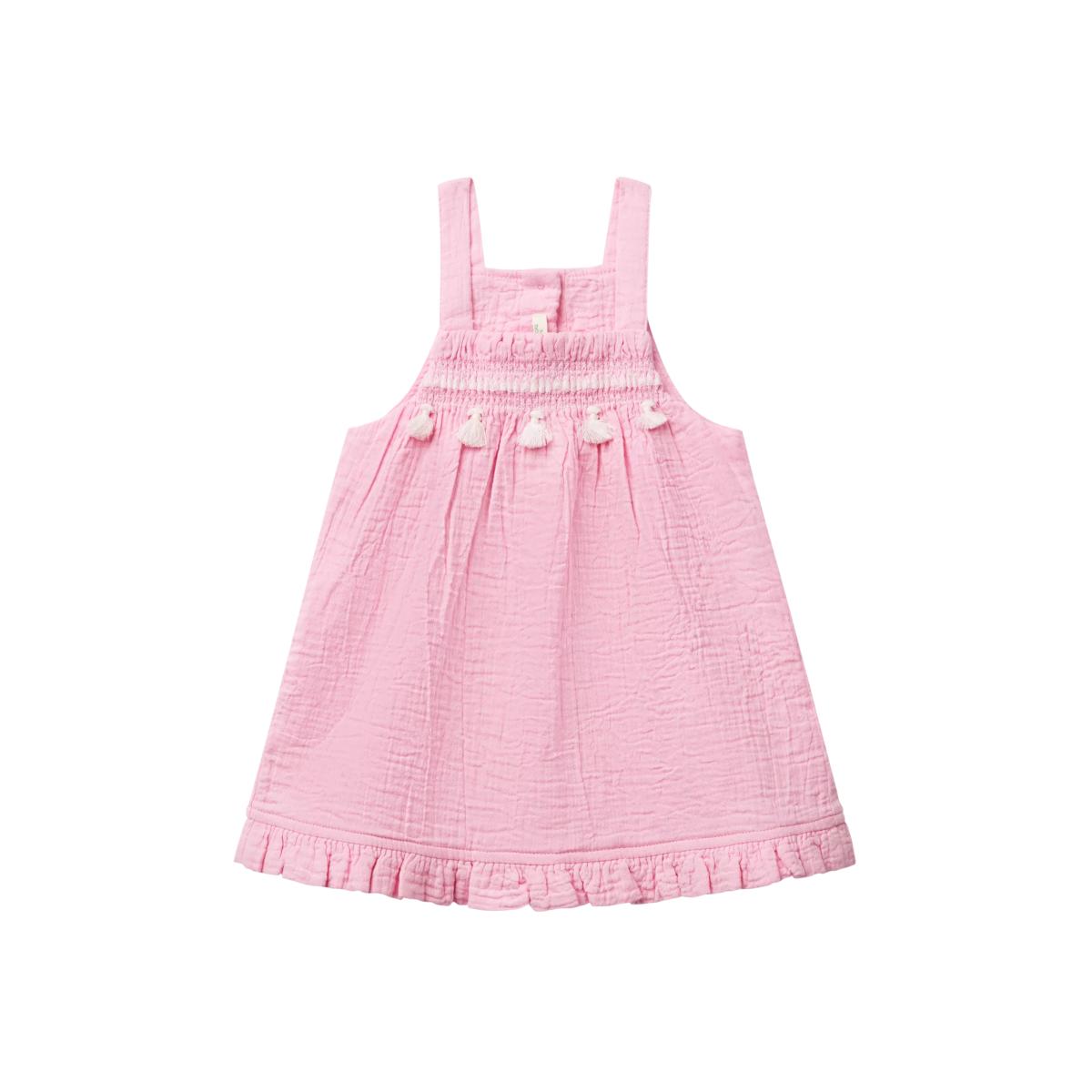 Playful cotton dress, perfect for summer outings with charming tassel detail and easy button fastenings at the back.