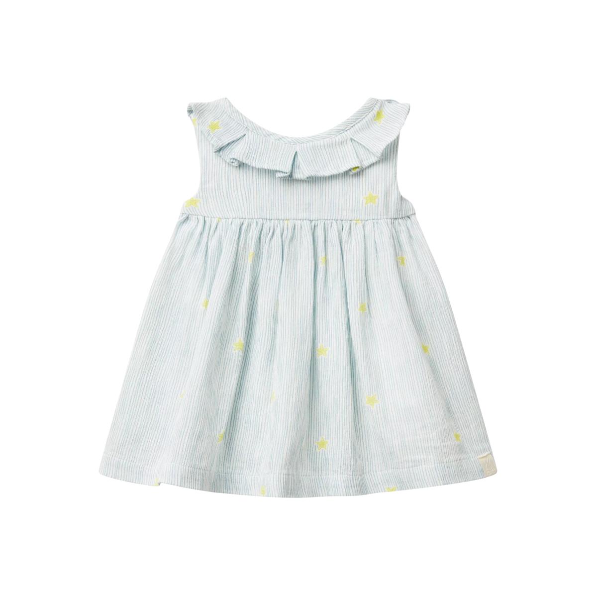 This sweet baby cotton dress works beautifully in a soft, neutral nursery scheme, especially one with muted colours and natural textures. I love its offwhite shade paired with subtle yellow dots-perfect for creating a calm, timeless environment. Styling-wise, it’s versatile enough to be layered with a cosy cardigan for cooler months or paired with simple accessories for a fresh summer look. When placed in a cot or Moses basket, it adds a gentle touch of classic charm that complements woven or wooden furniture. Practical tip: keep the dress close to neutral tones to maintain a restful, cohesive aesthetic throughout the space.
