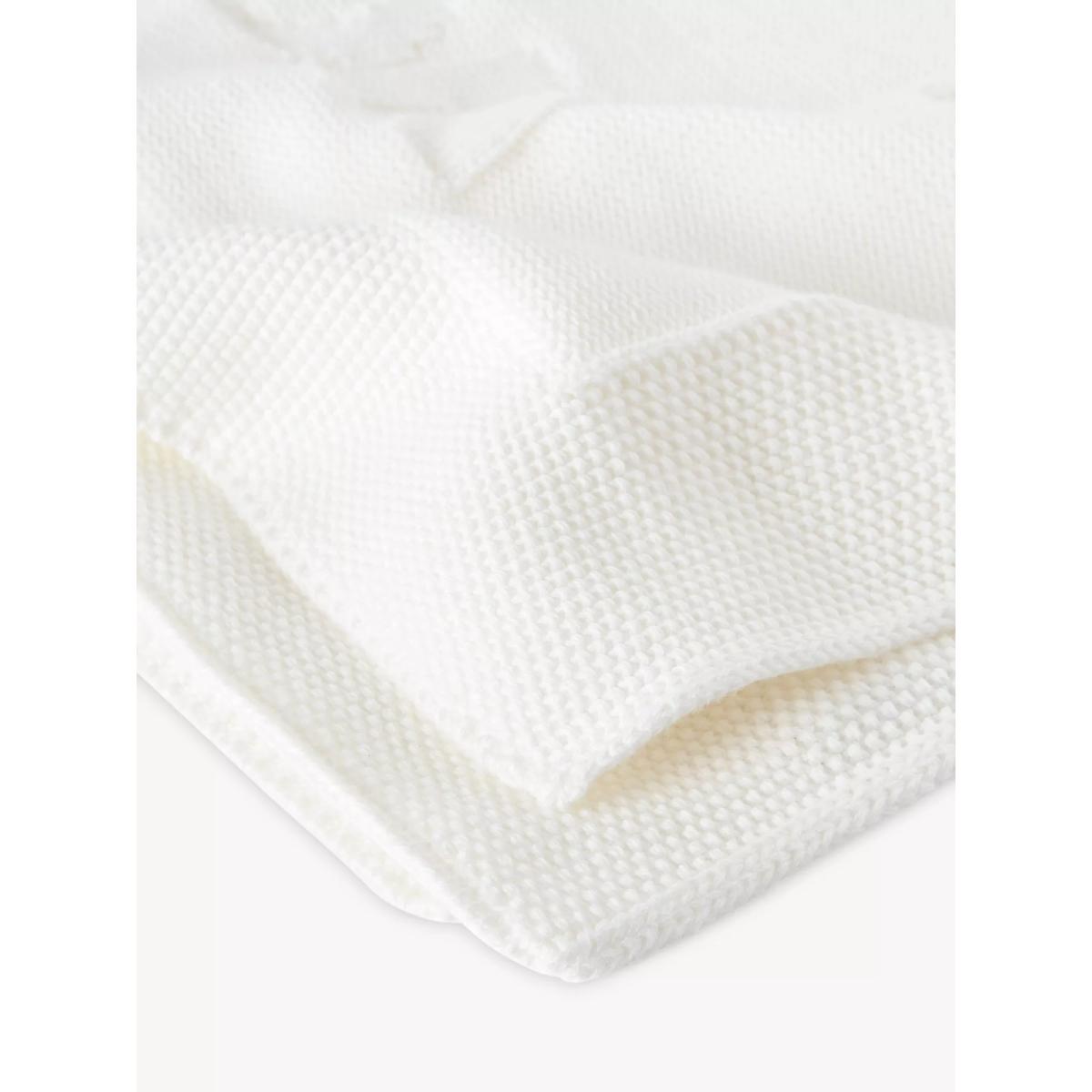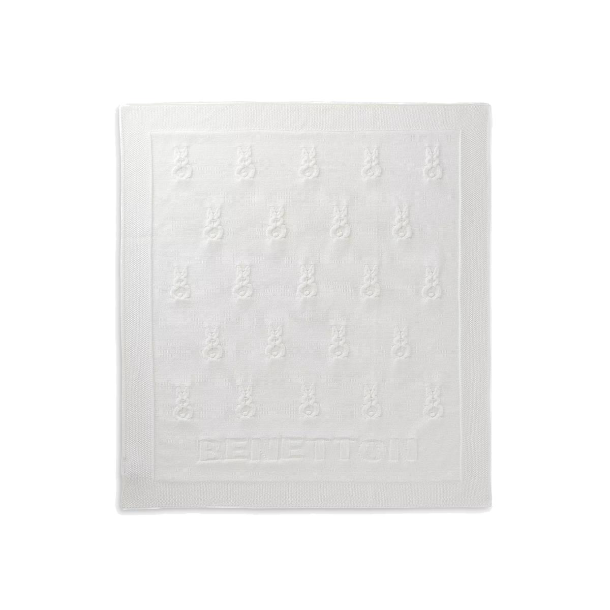 Baby blanket made in 100% knit cotton with stitch detailing and a bunny inlay design.