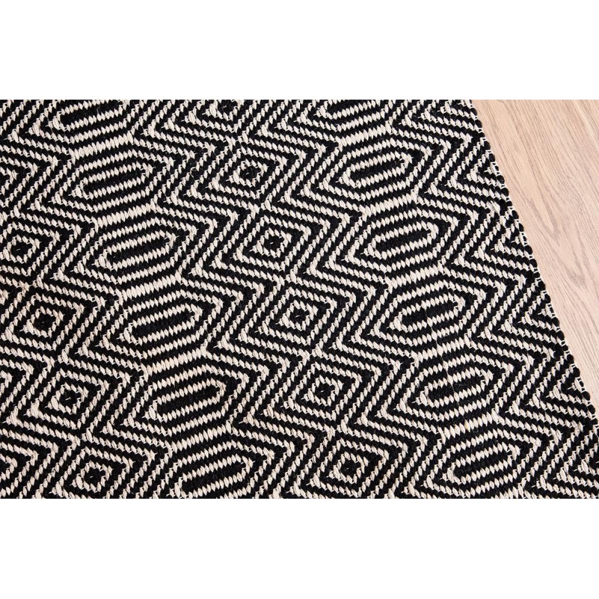 I love this rug for its bold geometric pattern, which instantly adds visual interest to any room. The black and white colour palette makes it a versatile choice, working particularly well in contemporary, minimalist, or Scandi-inspired interiors. It’s perfect for grounding a seating area and can be styled easily with a mix of modern or vintage furniture. Practical styling tips include pairing it with neutral or contrasting coloured cushions and accessories to emphasise its graphic design. Additionally, it works well in high-traffic areas due to its darker hues, hiding dirt and wear more effectively than lighter options. Overall, it’s a statement piece that offers personality without overwhelming the space.