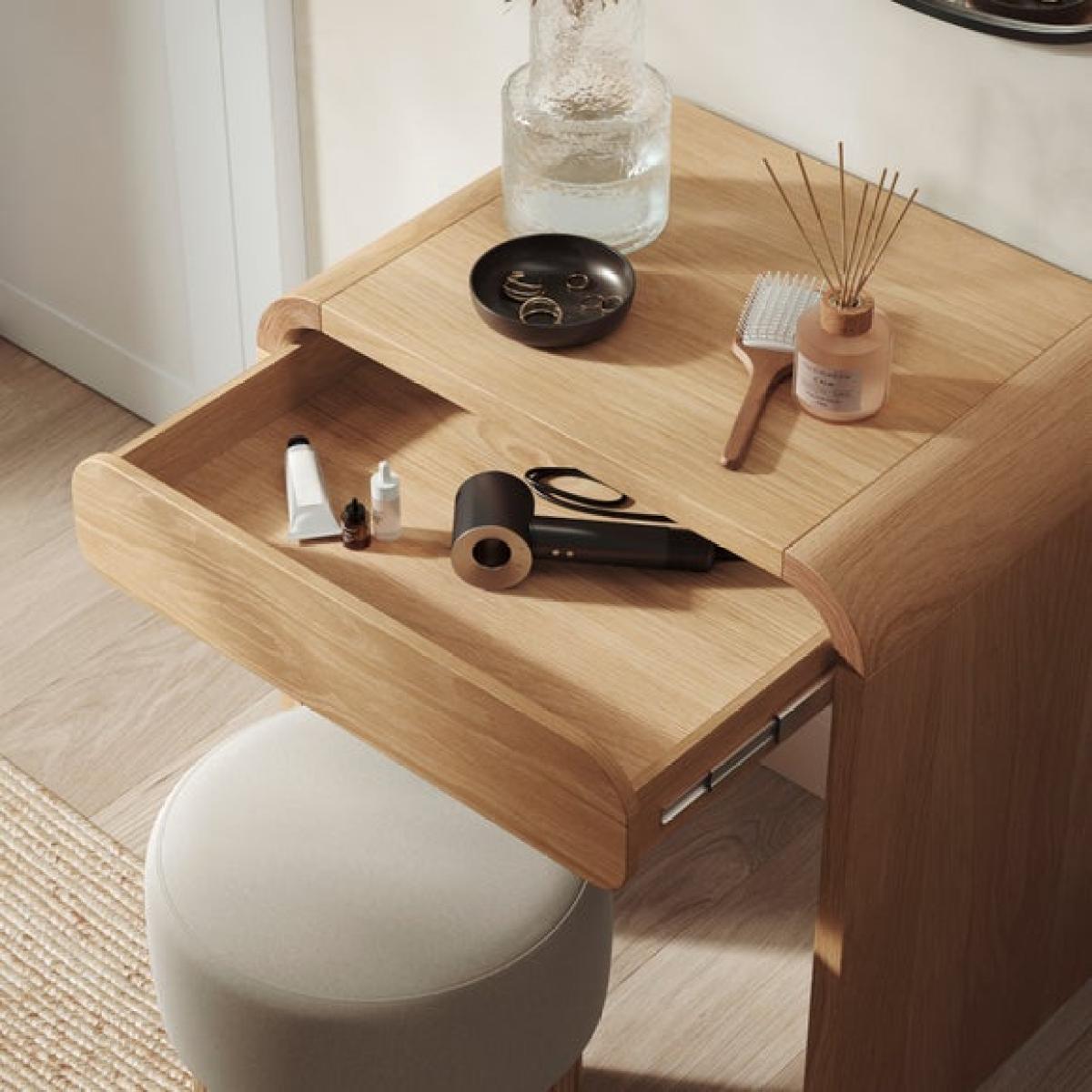 I love the Bennett compact because it offers a sleek, minimalist look that works beautifully in modern or Scandi-style interiors. Its compact size makes it ideal for smaller bedrooms or spaces where you want a dedicated but not overpowering dressing area. The natural wood finish adds warmth and versatility to the space, blending easily with neutral tones or adding contrast in more colourful rooms. For styling tips, pair it with a simple mirror or wall-mounted art, and keep tabletop accessories minimal to maintain a clean aesthetic. It’s perfect for practical, everyday use while complementing contemporary furniture collections.