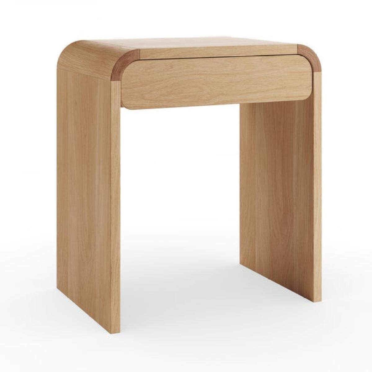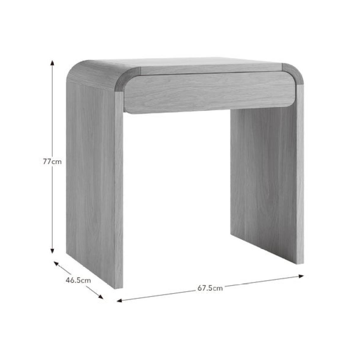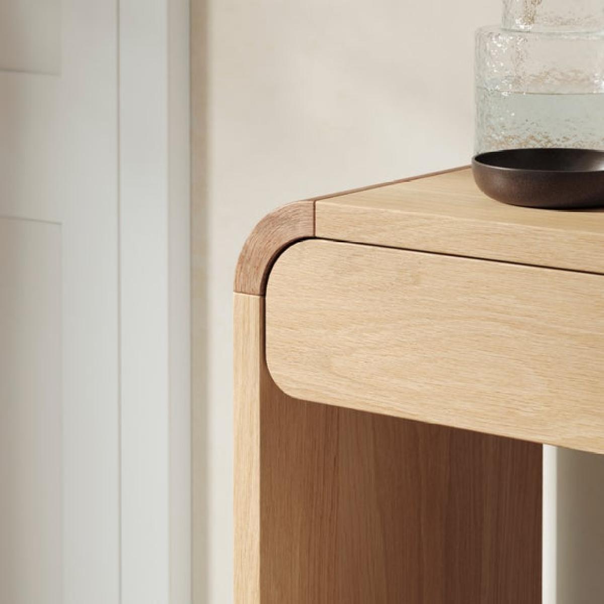 * Wooden dressing table * Unique curved design * 1 drawer The Bennett dressing table is a beautifully crafted piece that brings elegance and practicality to smaller spaces. Its unique curved design softens the overall silhouette, creating a gentle, organic feel that complements a wide range of interior styles. The light oak finish highlights the natural grain of the wood, lending warmth and character to the piece. Please Note: In accordance to The Offensive Weapons Act 2019, this product is now click and collect only. You may be asked to show ID upon collection.