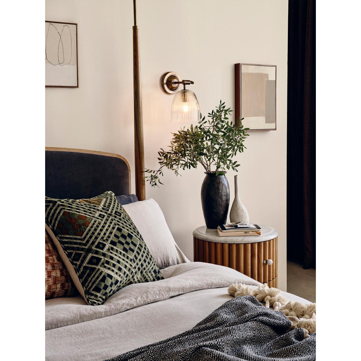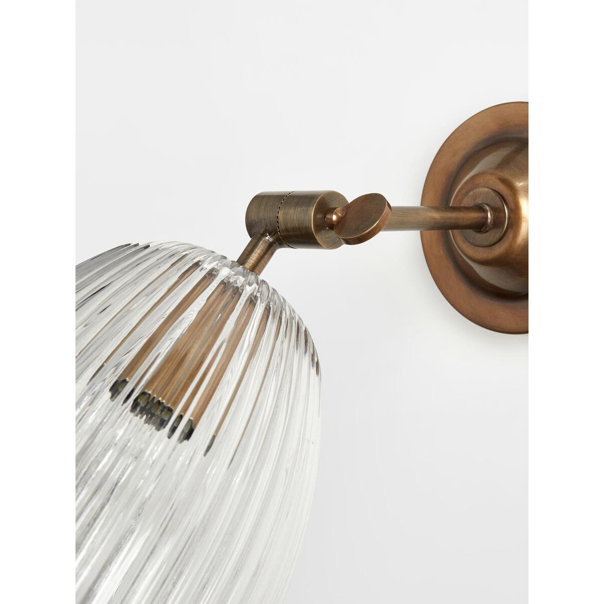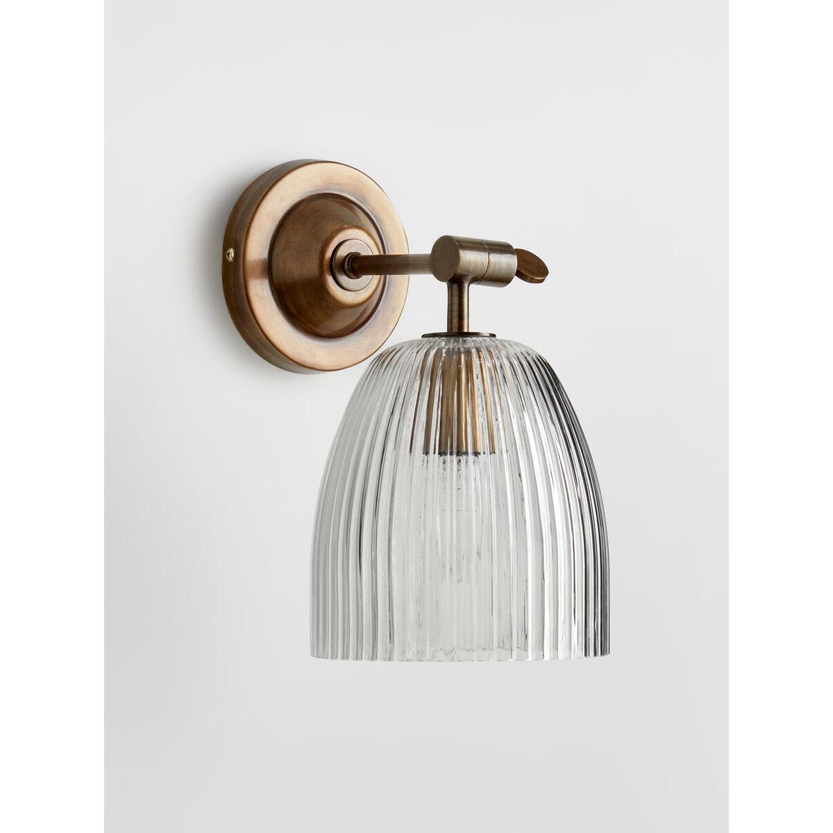 The Benny wall light has a vintage feel that references thestyles at Soho Warehouse, LA. The adjustable light has a ribbedglass shade, and designed with antique brass finish arms that moveto suit your lighting needs. Fit it by your bedside to createdirectional light for late-night reading. Adjustable arm. Antique brass finish arms. Ribbed glass shade. Requires 1 x E14 bulb/ max 28. W. Inspired by Soho Warehouse, LA.