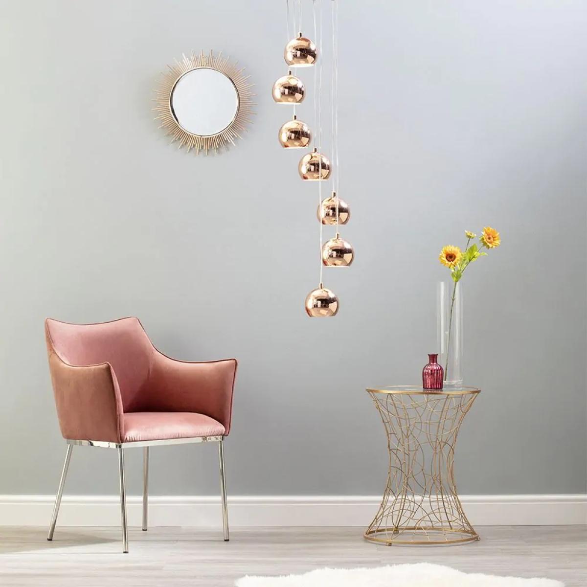 The Benson Cluster Pendant combines modern design and retro styling, with a beautiful shiny copper colour that works wonderfully in any modern home. This statement pendant has a chic, vintage aesthetic, able to be styled in any room. This ceiling light also has a copper finish, giving off a luxuriously warm appearance that would look perfect in any bedroom, living room or dining room.