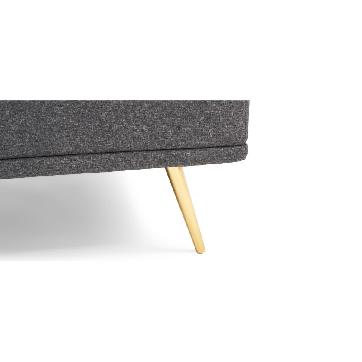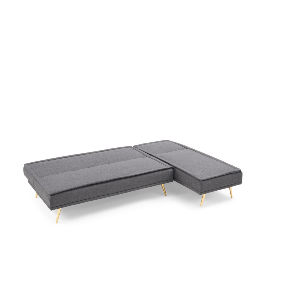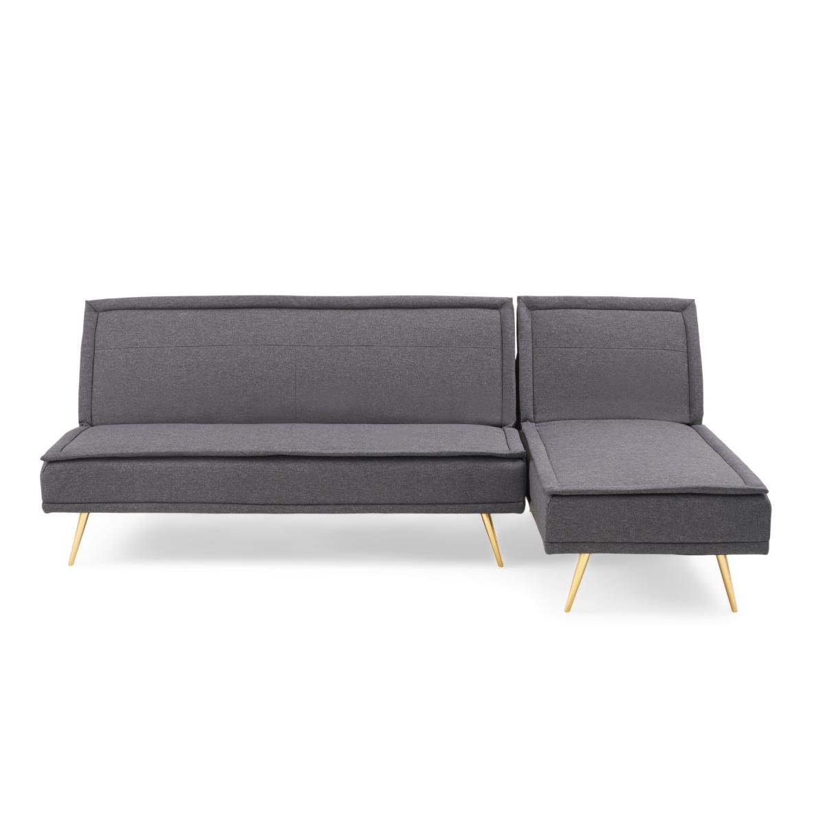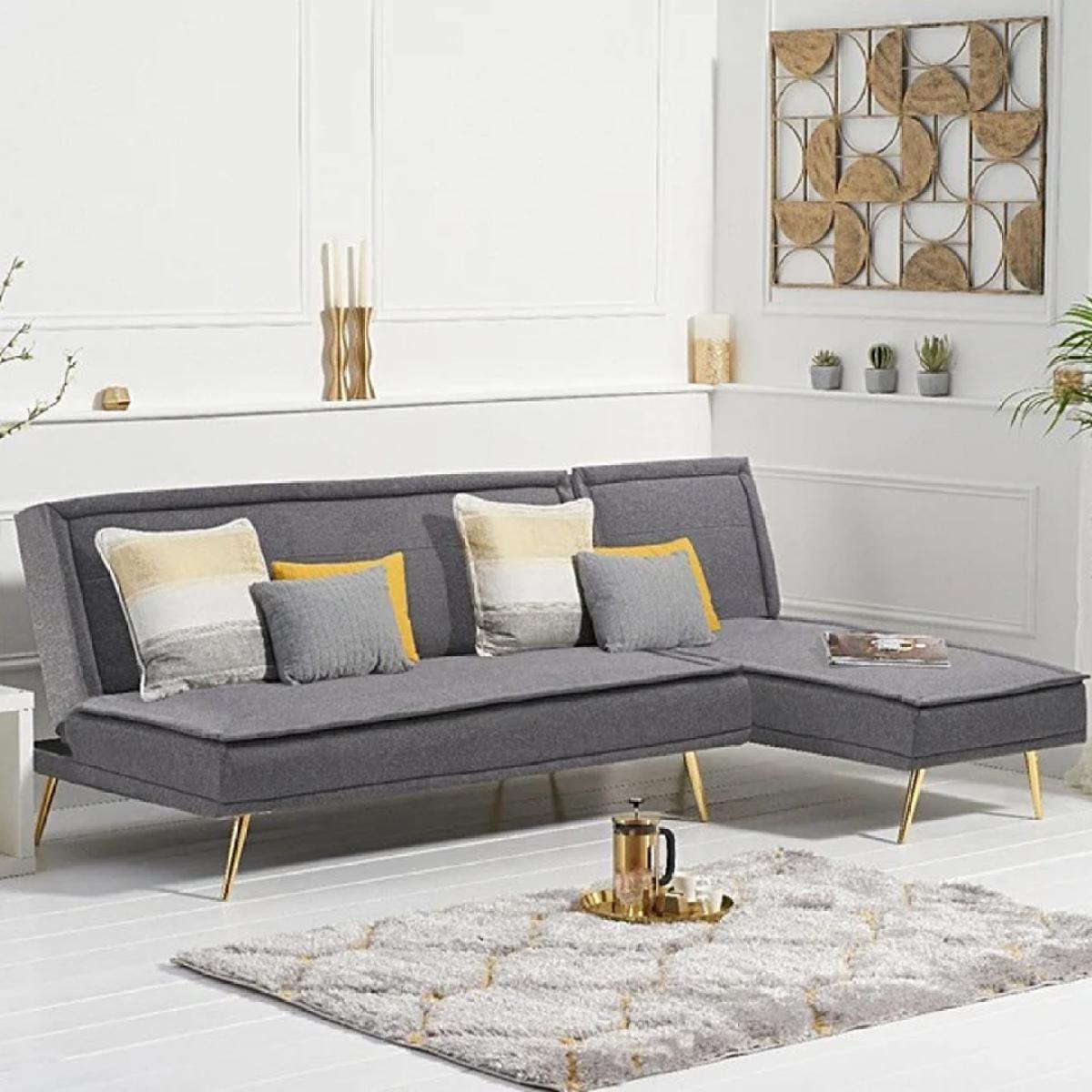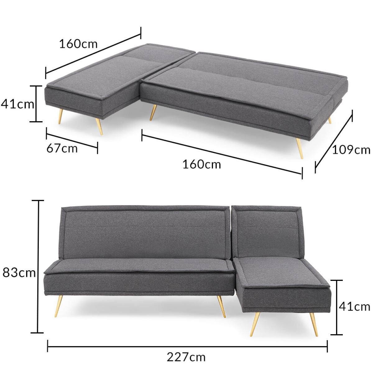 With plenty of room for the entire family, the Benson Chaise Sofa will be the much-loved centrepiece of your living room. With clean lines, contemporary edging and masses of seating plus a double bed option, the open-ended Benson creates a welcoming atmosphere - ideal for open-plan living. Expertly tailored with contemporary edging. Beautifully inclined tapered gold chrome legs. Seats three (more if chaise longue is used as an extra seat) or sleeps two. Choose from blue, grey or green soft-touch velvet or a modern grey linen. Just assemble the legs and your sofa is ready!