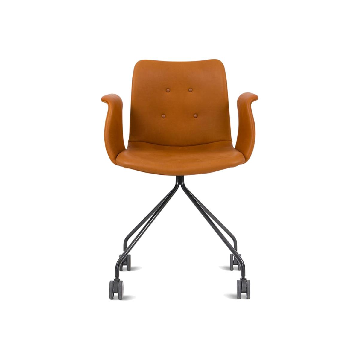 Bent Hansen Primum chair with armrests leather seat Adrian Cognac-black wheel base
