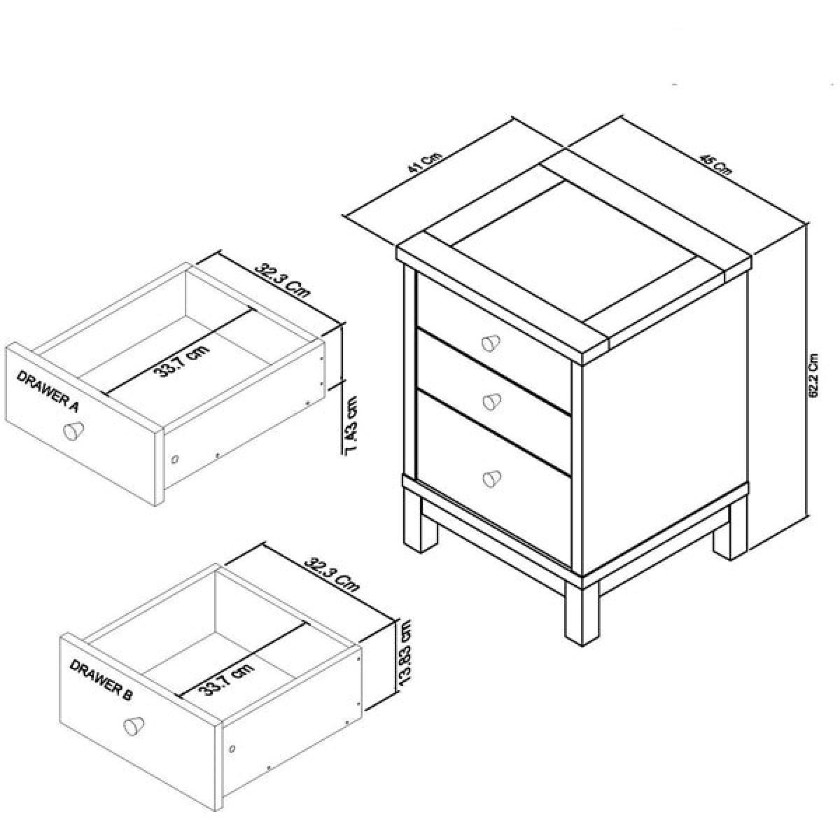 Chest of Drawer Atlanta 3 Drawer Nightstand Oak.
