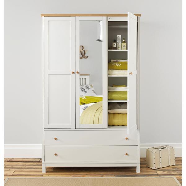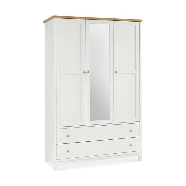 I really like this wardrobe because of its versatile two-tone finish which effortlessly adds a touch of modern charm to a variety of interiors. It works particularly well in classic or country-inspired schemes where it can offer a fresh contrast, or in contemporary spaces looking to introduce subtle warmth. The inclusion of a mirror in the centre enhances functionality, making it ideal for bedrooms or dressing rooms. Styling tips would include keeping the surroundings simple to highlight the clean lines and colour contrast, perhaps accessorising with minimalist lighting or textiles in complementary tones. Overall, it’s a practical, attractive piece that can serve as a cohesive focal point in both traditional and modern interiors.