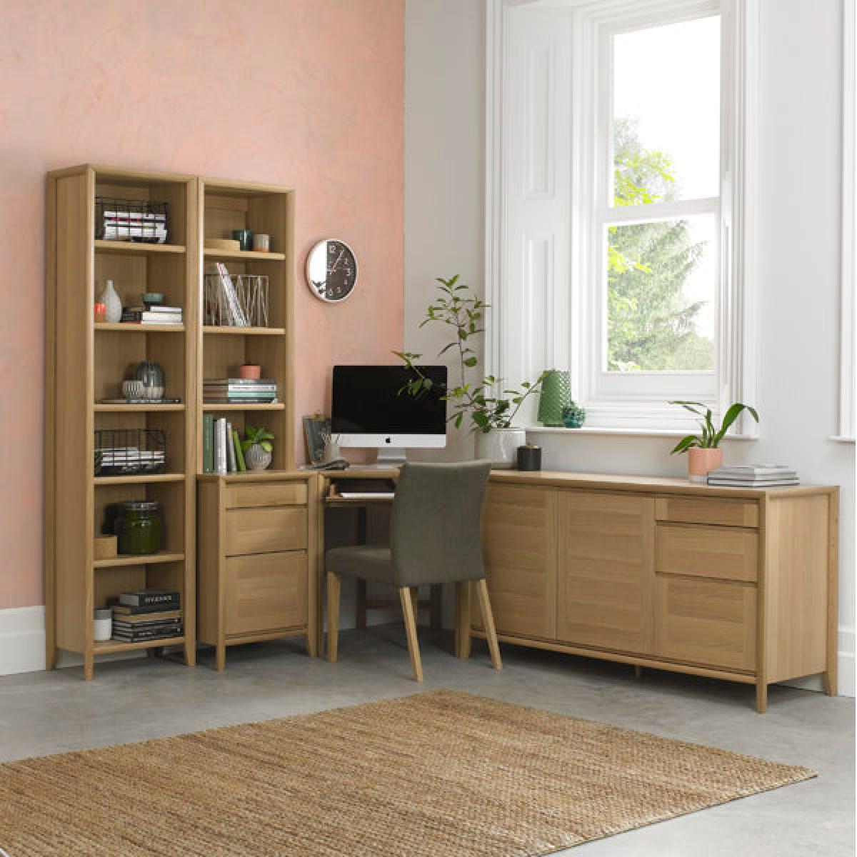 I love the Bentley Bergen Oak Filing Cabinet for its clean, minimalist design that allows it to slot seamlessly into a variety of interiors. Its natural oak finish adds warmth and texture, making it a versatile choice for both contemporary and Scandi-inspired schemes. Practically, it offers ample storage without feeling bulky, particularly suitable for home offices or bedrooms where space is at a premium. Styling tips include pairing it with other natural wood or textured textiles for a cohesive feel, or using it as a statement piece in a modern workspace. Its understated elegance makes it both functional and effortlessly stylish.