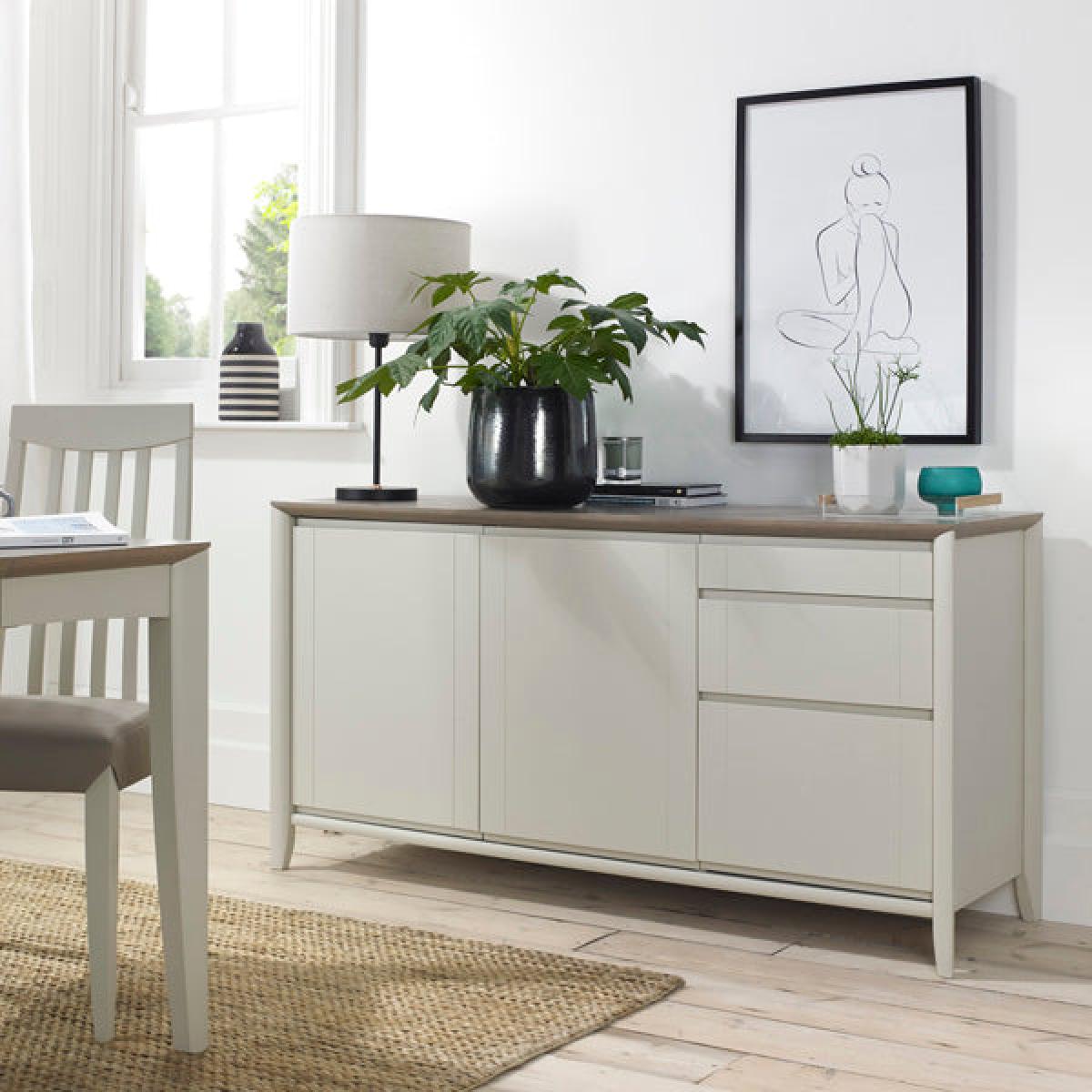 Bentley Bergen Wide Grey Washed Oak & Soft Grey Sideboard