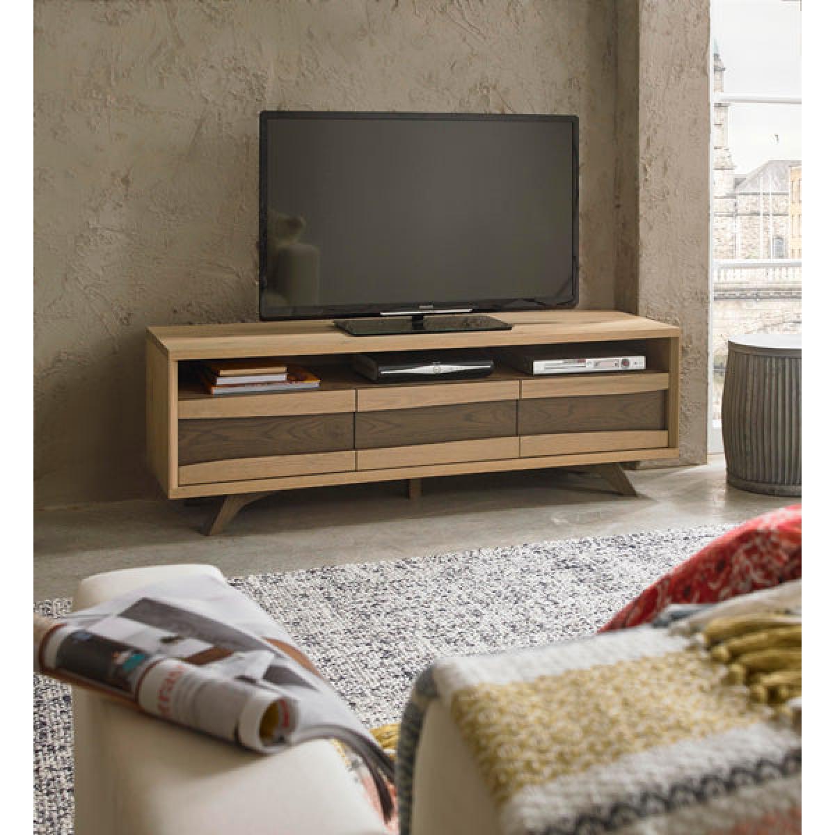I love this media unit for its sleek, modern design paired with that warm aged oak finish, which makes it versatile for both contemporary and rustic interiors. It works particularly well in open-plan living spaces or neutral-coloured schemes, providing a subtle centrepiece without overpowering the room. Practical styling tips include pairing it with minimalistic accessories, such as understated vases or books, to emphasise its clean lines. To enhance its appeal, consider adding contrasting yet complementary elements, like matte black or dark grey accents, which will help it stand out while maintaining an elegant aesthetic. It’s a great choice for those wanting a functional piece that also adds a hint of understated sophistication.