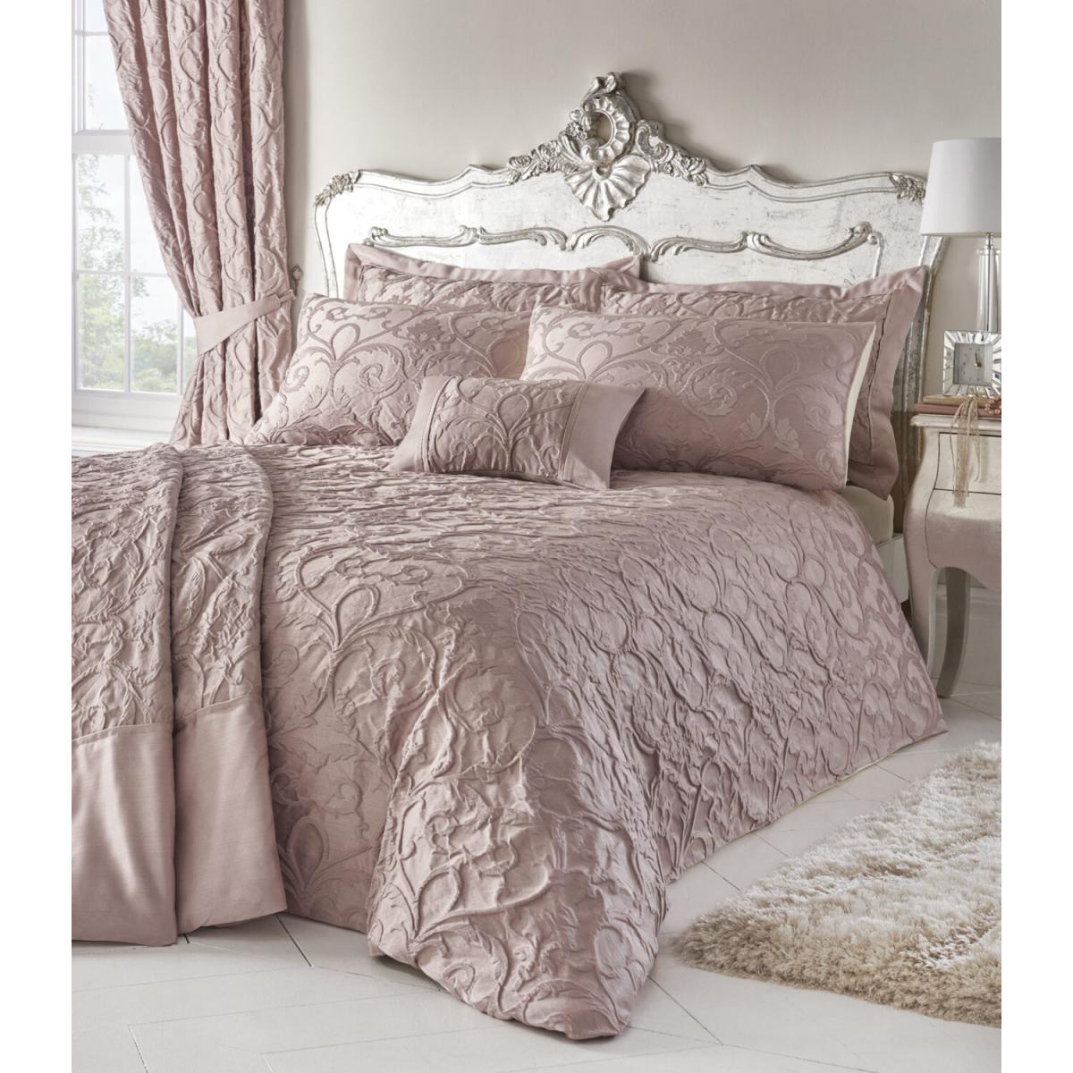 Luxury is redefined in this stunning Bentley Duvet Cover and Pillowcase Set, boasting beautiful jacquard fabric in a gentle blush pink colour. The traditional ornamental scroll is emphasised by the textured weave, creating a sumptuous and regal look to give your bedroom a touch of sophistication.