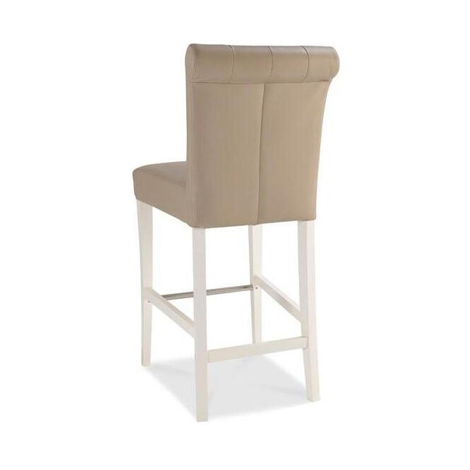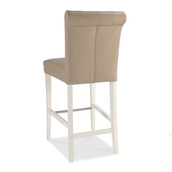 I love this barstool for its versatile two-tone design, which effortlessly combines classic elegance with a touch of modernity. Its neutral upholstery pairs well with a range of colour schemes, making it suitable for both traditional and contemporary interiors. The high-backed style adds an element of comfort and support, ideal for longer seated conversations. To style it effectively, consider placing these stools at a breakfast bar or wine counter, and complementing them with matched bar-height tables or contrasting textures like wood or metal to create visual interest. Practical tips include opting for a wipe-clean finish or adding cushions for extra comfort, ensuring they remain both stylish and functional in a busy space.