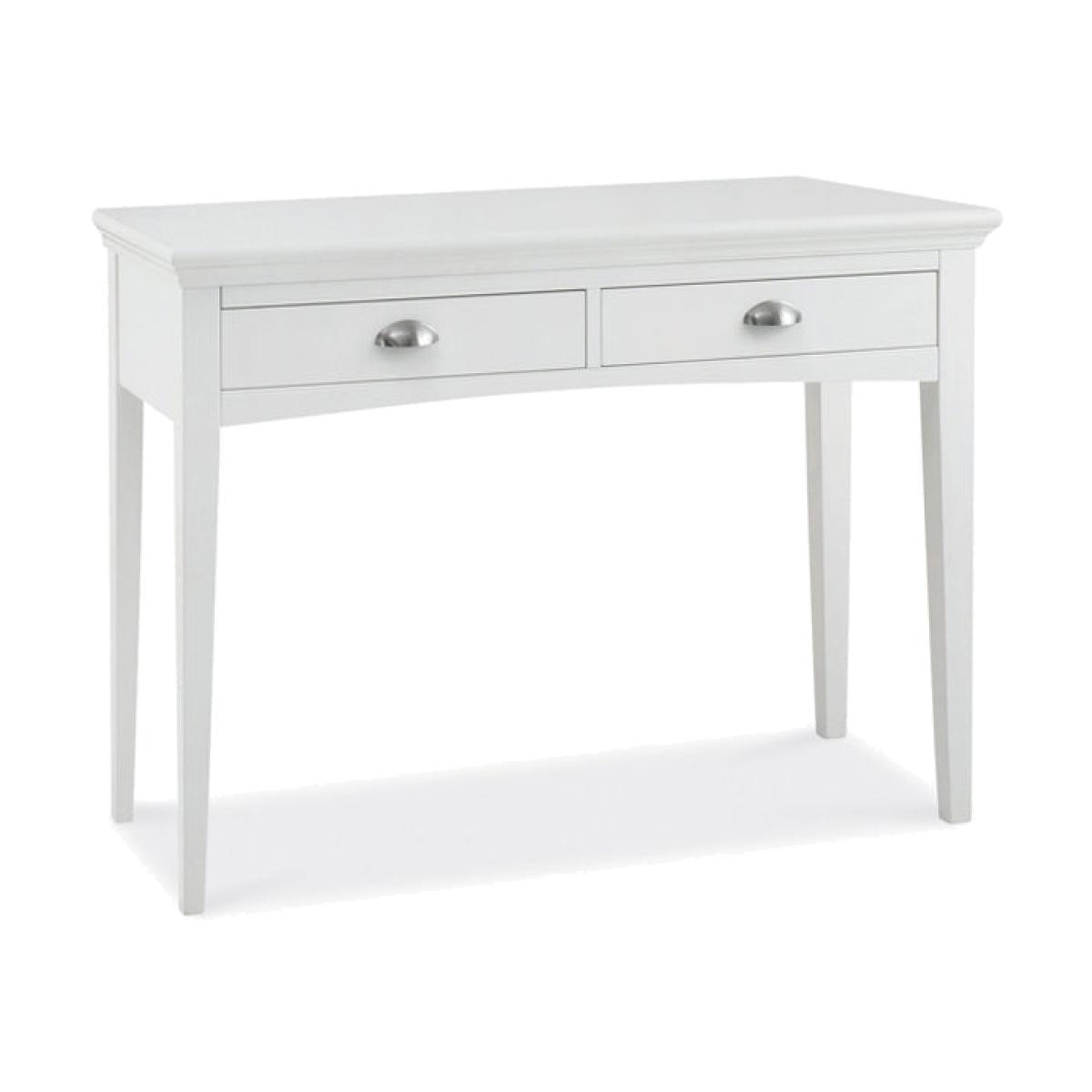 I love the clean, versatile aesthetic of the Bentley Hampstead white dressing table, which works beautifully as a console table in a variety of interiors. Its understated design makes it ideal for both modern and traditional spaces, from minimalist hallways to classic bedrooms. Practical styling tips include keeping the surface clutter-free with a few carefully curated accessories, like a decorative tray or a small vase of fresh flowers, to maintain its airy feel. In smaller rooms, it can double as a stylish organiser or workspace, while in larger areas, it can be paired with statement lamps or art pieces to create a focal point. Its neutral white finish makes it easy to incorporate into various colour schemes, adding a touch of understated elegance to any scheme.