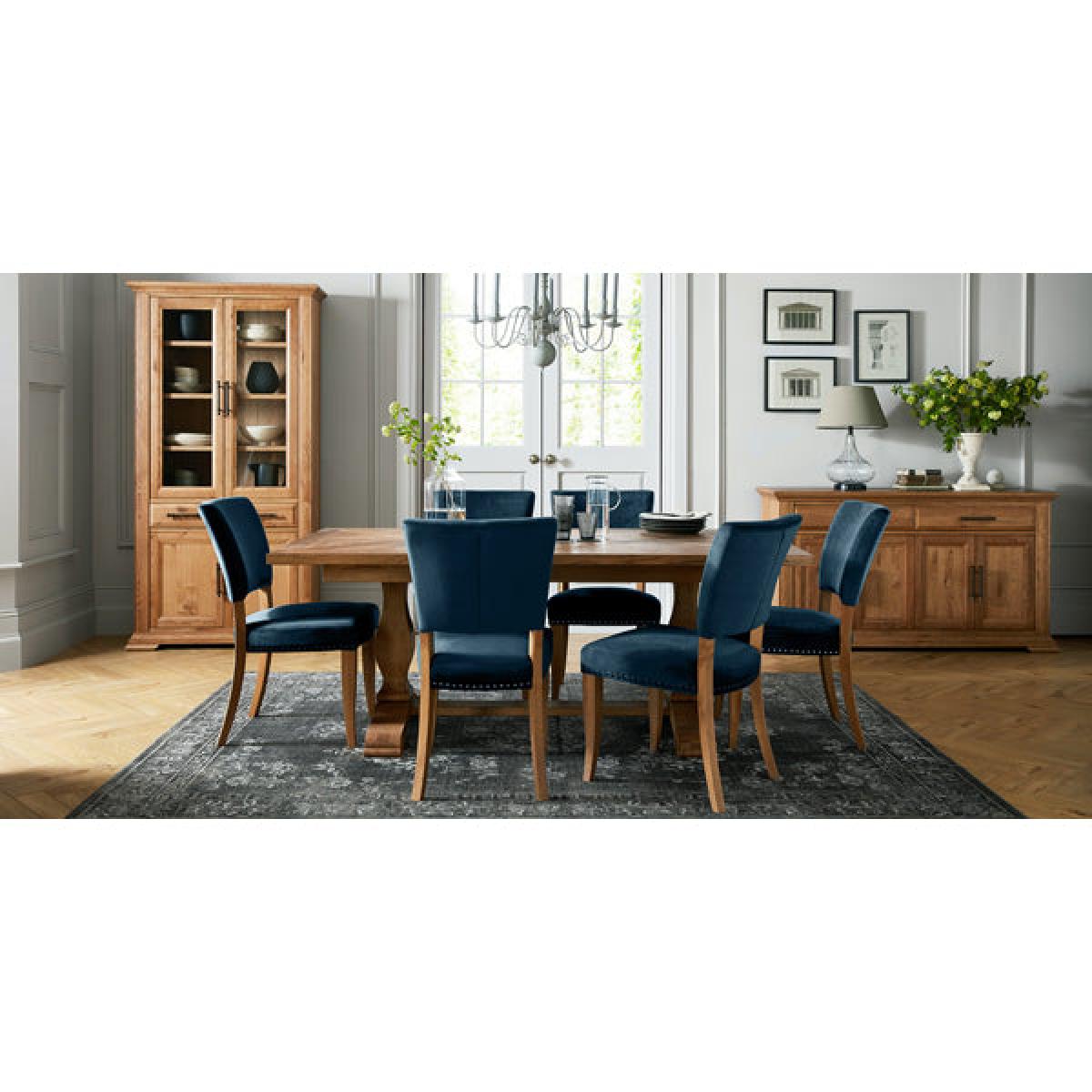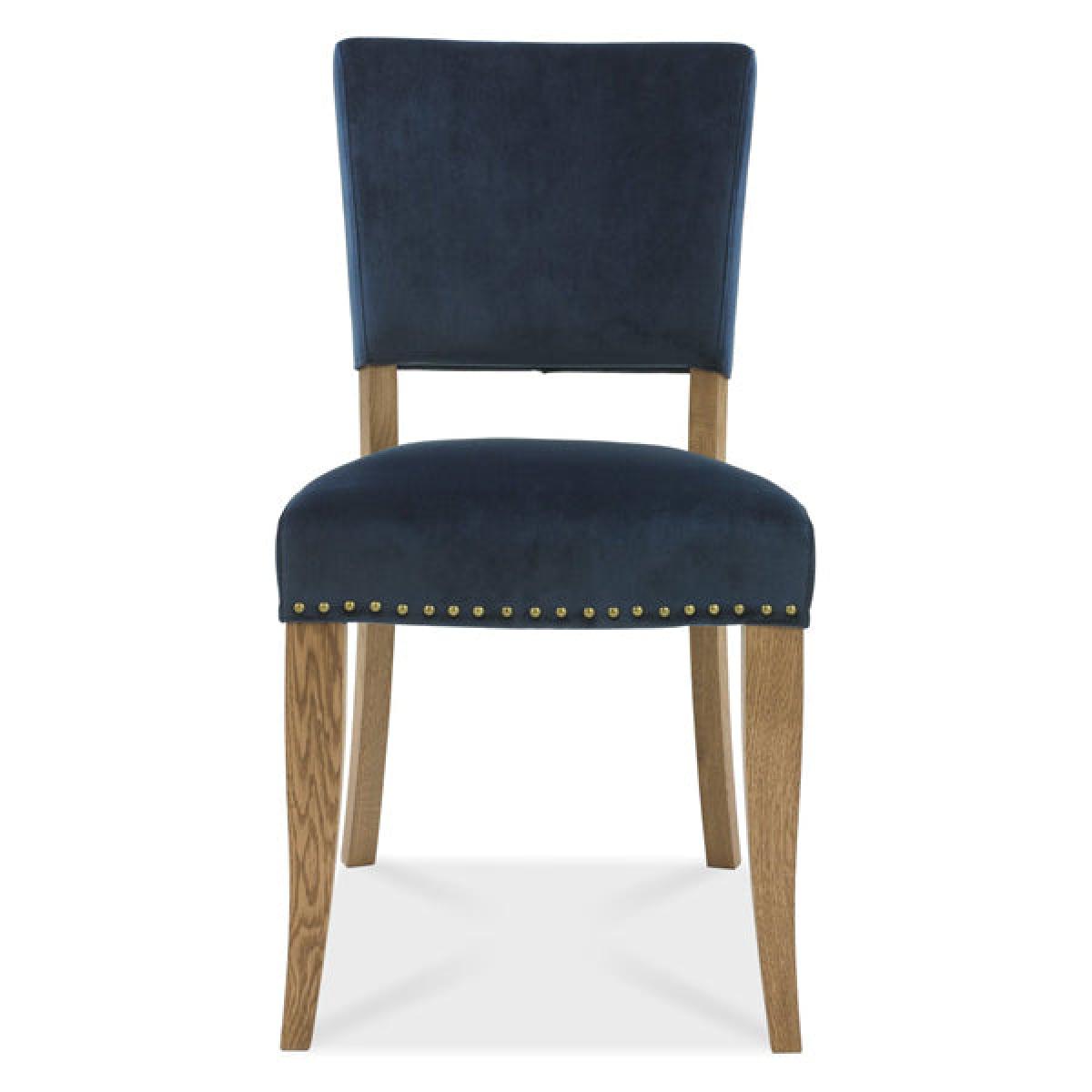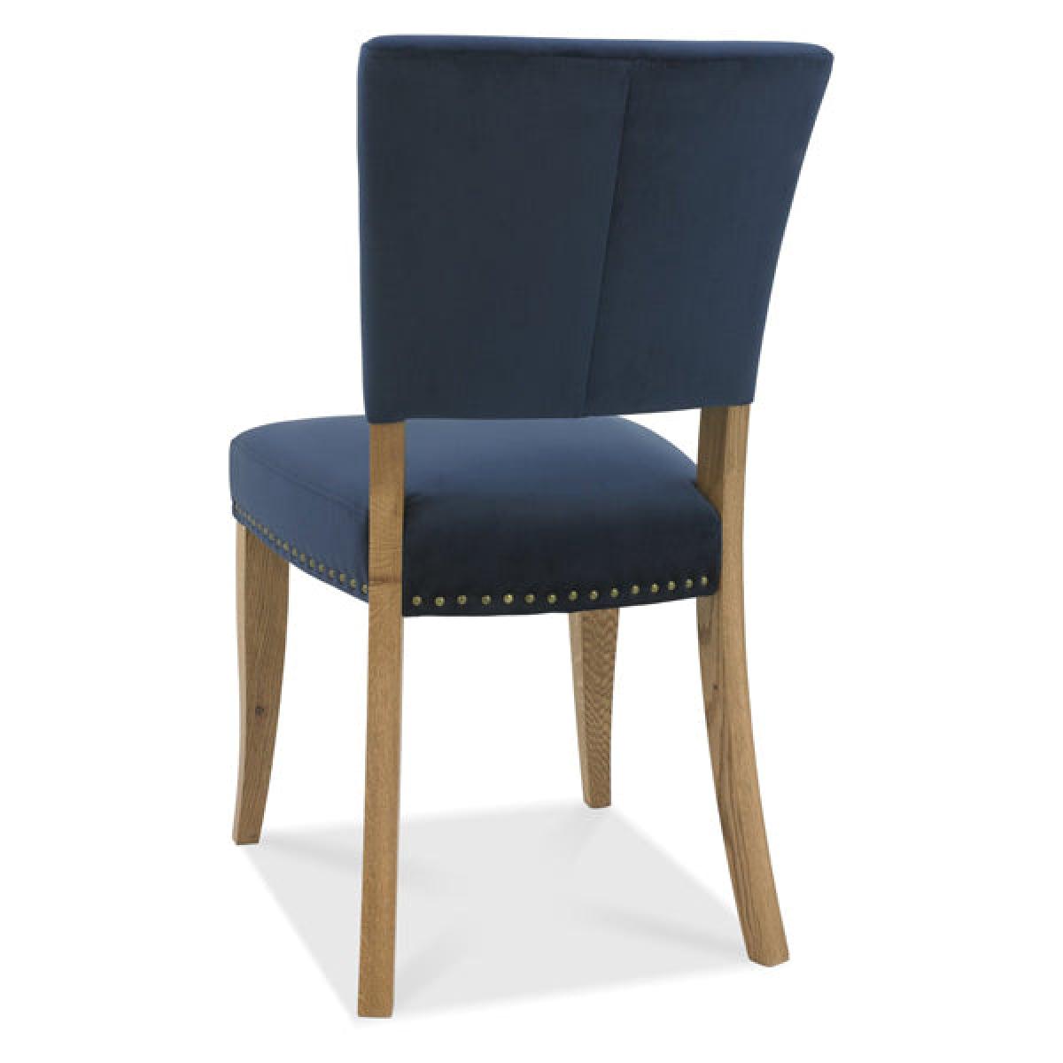 Bentley Indus Rustic Oak Upholstered Velvet Dark Blue Dining Chairs