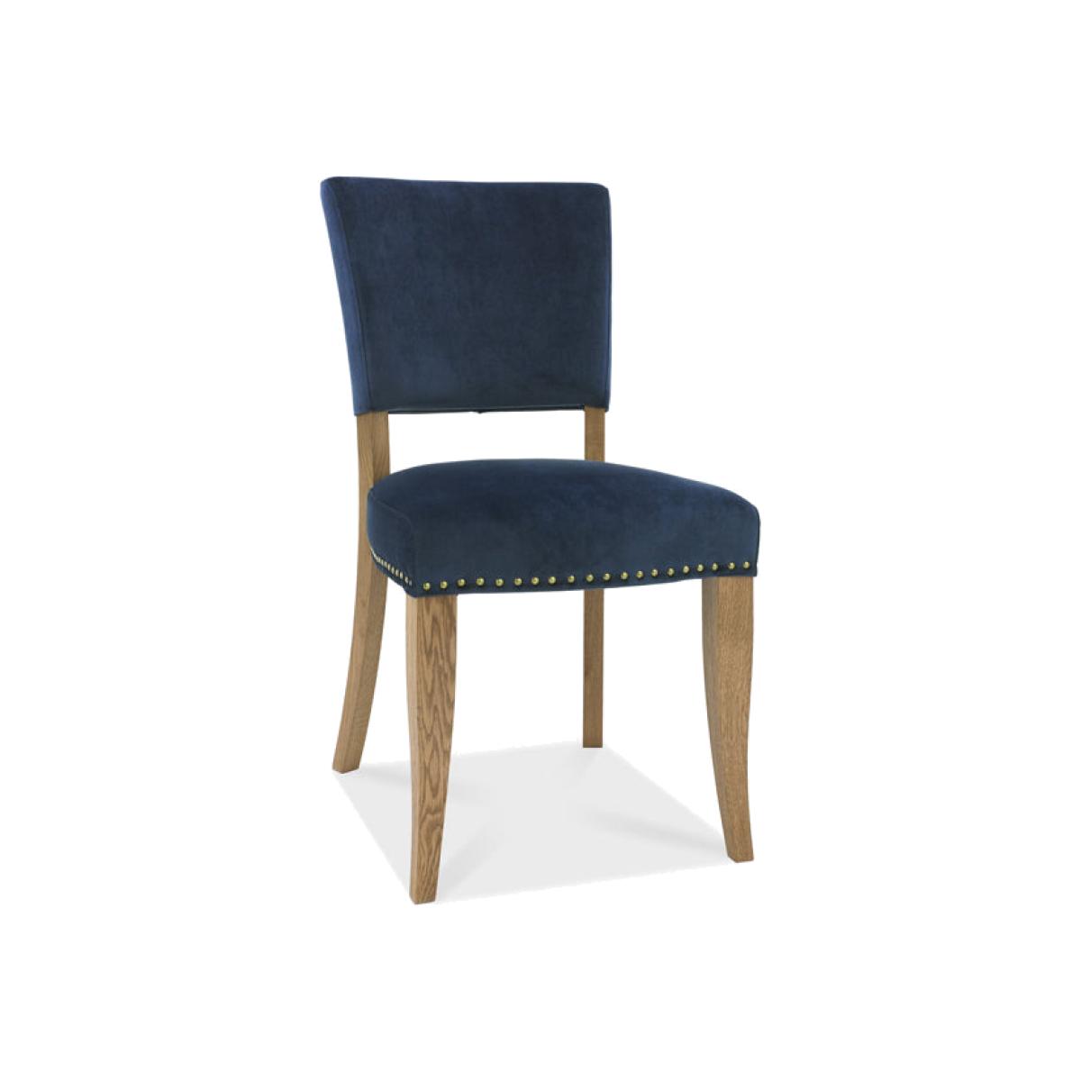 Dining Chair Indus Rustic Oak Upholstered Velvet Dark Blue.