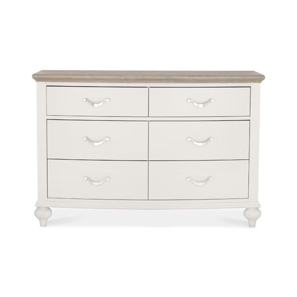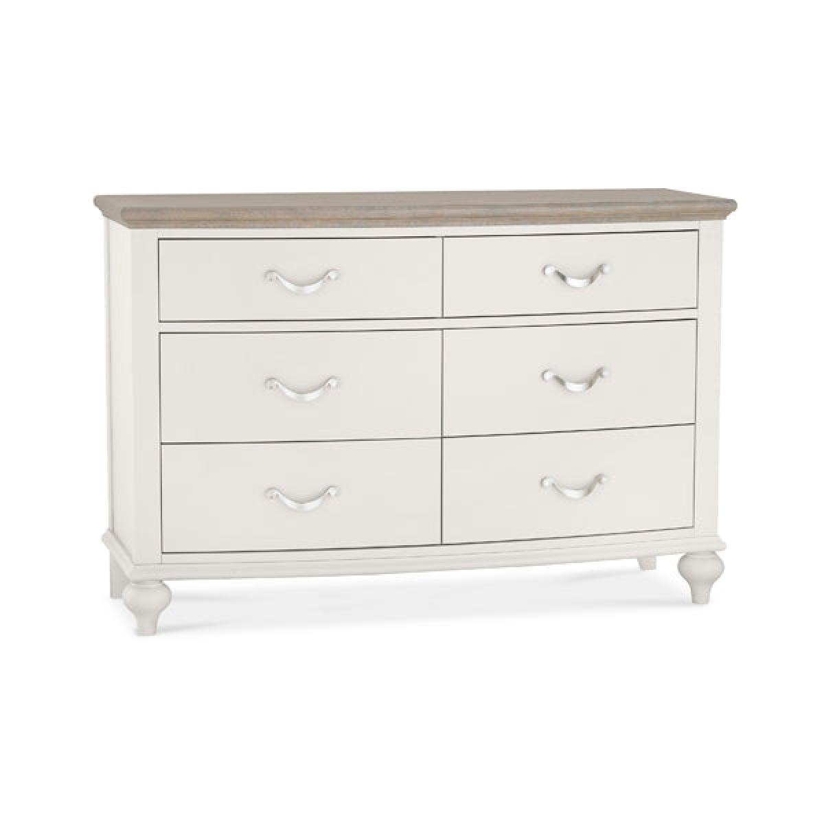 Chest of Drawer Montreux 6 Dawer Wide Soft Grey And Grey Washed Oak.