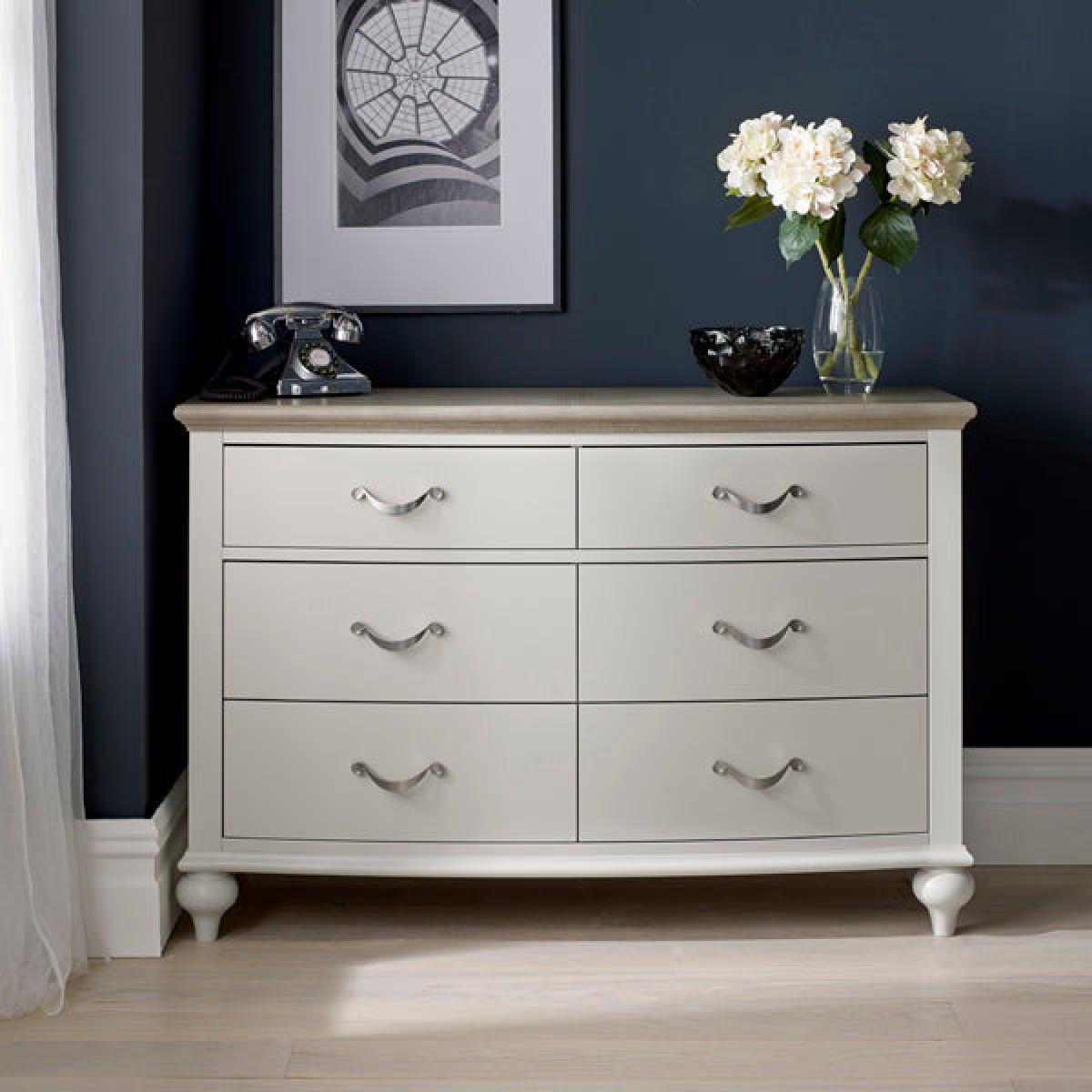 Bentley Montreux 6 Dawer Wide Soft Grey And Grey Washed Oak Chest of Drawers