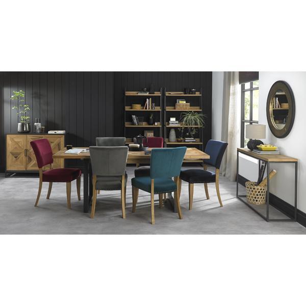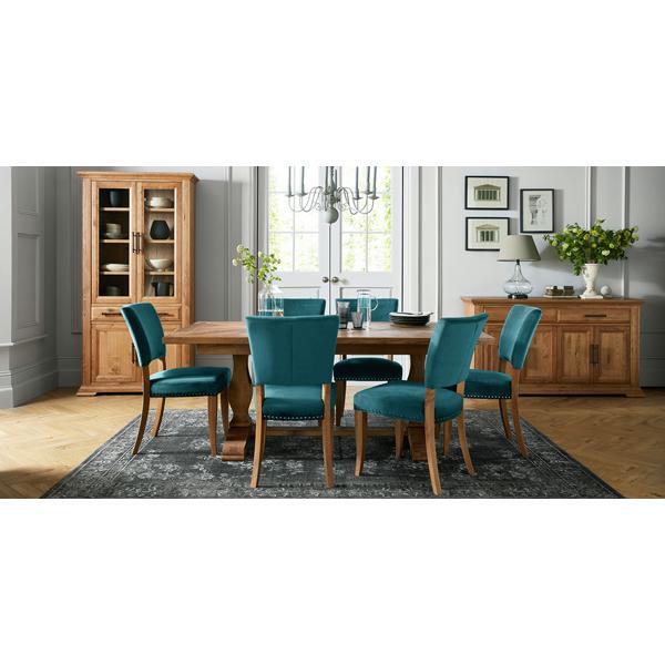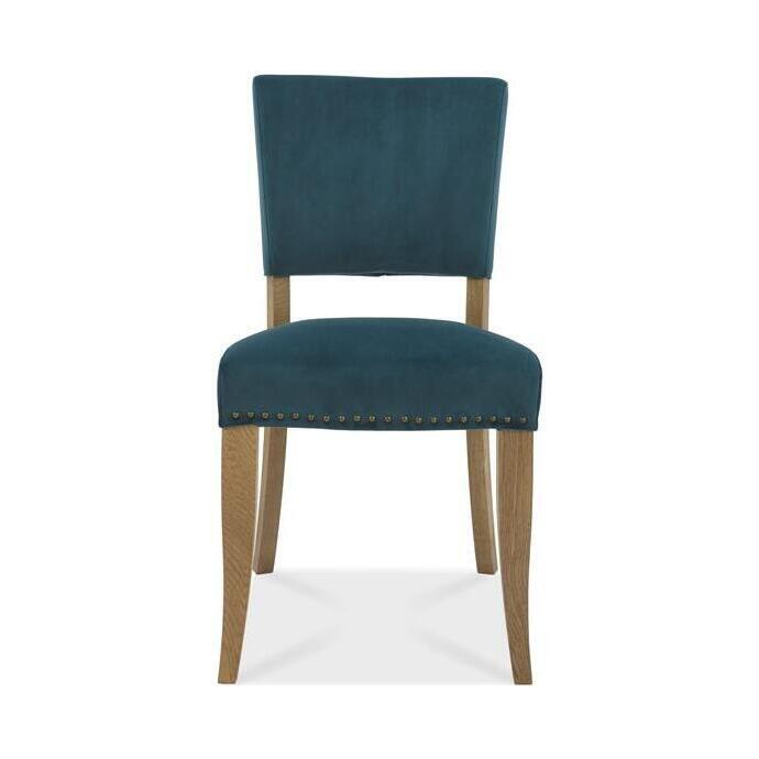 I love this chair for its rich velvet seat and striking sea green colour, which add a touch of sophistication and colour pop to dining spaces. The rustic oak legs introduce warmth and natural texture, making it versatile enough for both traditional and contemporary interiors. It works particularly well in eclectic or coastal-inspired schemes, where the bold hue can complement other statement pieces. For styling tips, consider pairing it with a neutral or wooden dining table to let the colour sing, and add cushions or throws for extra comfort and visual interest. This chair makes a practical yet stylish choice, offering comfort for long dinners while elevating the overall look of your dining area.