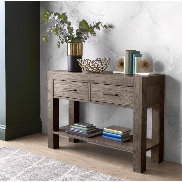 I really like this table for its sleek, dark oak finish, which adds warmth and sophistication to a variety of interiors. It works particularly well in contemporary or rustic schemes, bringing a grounded, natural touch to hallways or living spaces. When styling, consider layering with woven baskets or ceramics on the bottom shelf for practicality and visual interest. The top surface can be styled with a statement lamp, a few well-chosen decorative items, or a mirror above to create a welcoming entryway. Its clean lines and neutral tone make it versatile enough to pair with both modern and traditional pieces, giving a space both function and style.
