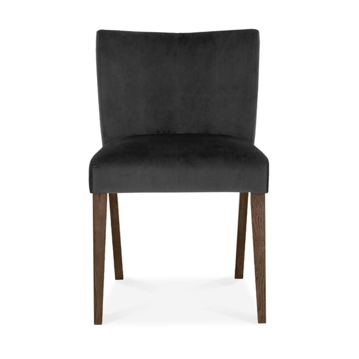 I really like these chairs for their sleek, contemporary look that blends the gunmetal finish with dark oak legs-making them versatile for both modern and transitional dining rooms. The low-back profile offers a streamlined silhouette, perfect for creating an open, airy feel around your table. They work particularly well in urban, industrial, or minimalist interiors, but can also add a touch of sophistication to more eclectic spaces. For styling, pair them with a marble or glass table to highlight the finishes, and consider coordinating accessories like dark-toned cutlery or textured table linens to complete the aesthetic. These chairs are practical but also bring a subtle sense of elegance that can elevate even simple dining setups.