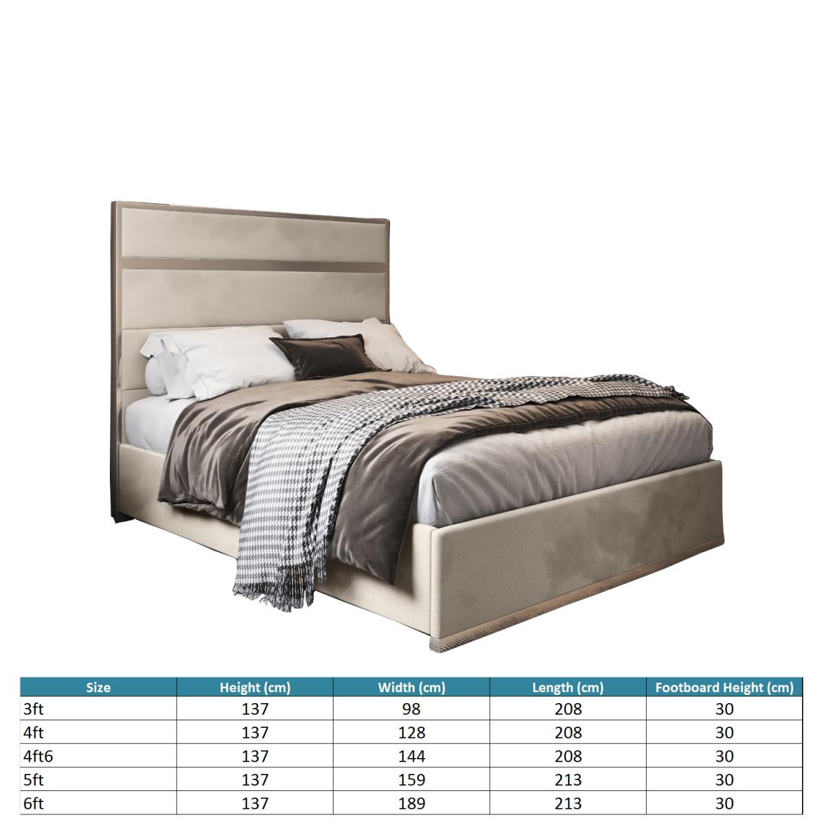 The Bentley showcases three soft, deep padded horizontal panels, perfect for leaning back and relaxing against. The indent metal horizontal bar emphasises the panelling exceptionally by creating a break in design. The subtle design is accompanied by a matching metal surround which creates the perfect embodiment of light from any angle. We have really gone in to the science in the design process to develop and make a classy concoction. Premium and luxury the Bentley bed is a staple of our Luxury Metal Beds Collection. The Bentley is hugely popular for its capability to seamlessly integrate well in to any decor. All beds come with a quality solid platform board base for robust and durable mattress support. All fittings are pre-fitted making the bed simple to assemble in two easy steps!