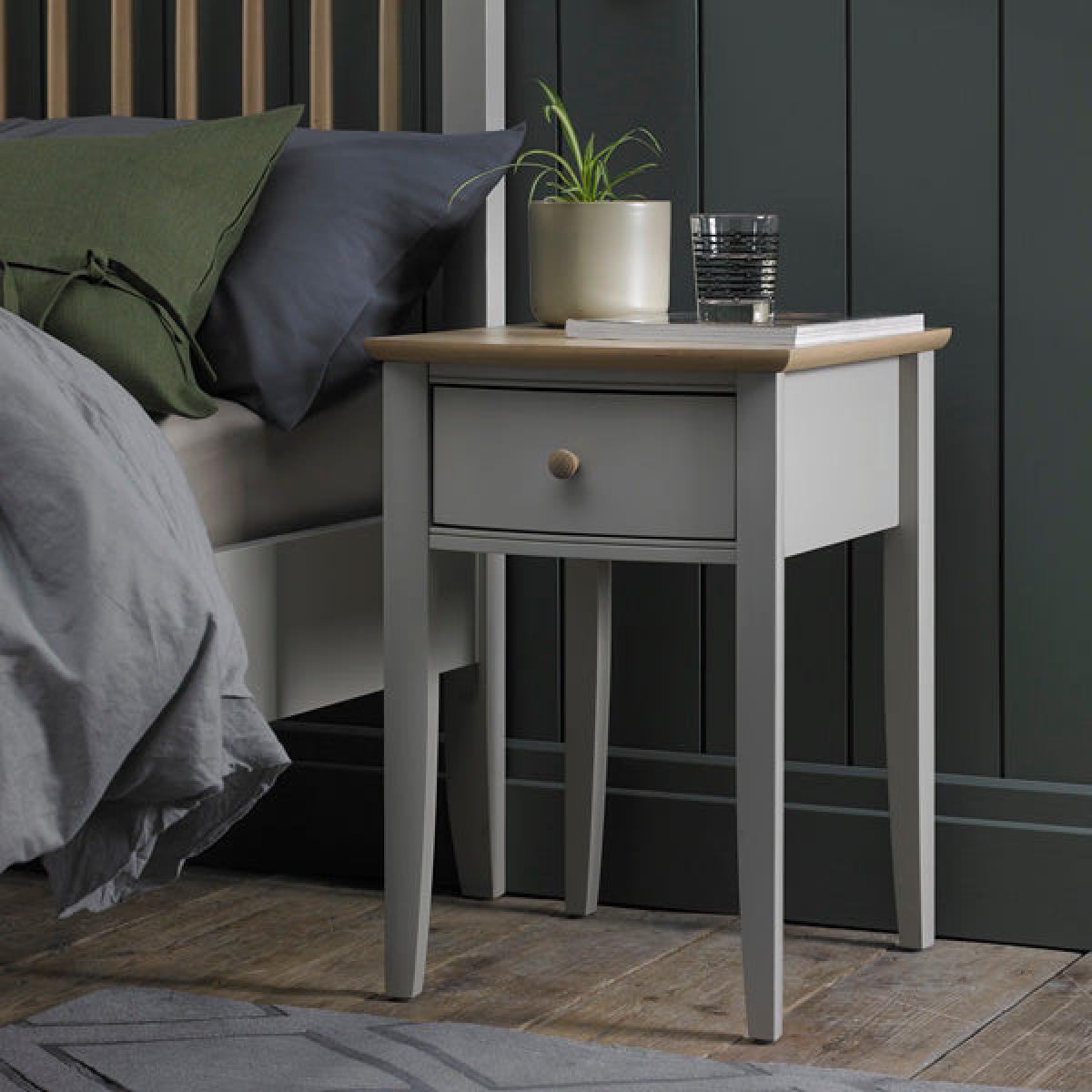 Bentley Whitby 1 Drawer Scandi Oak And Grey Square Nightstand