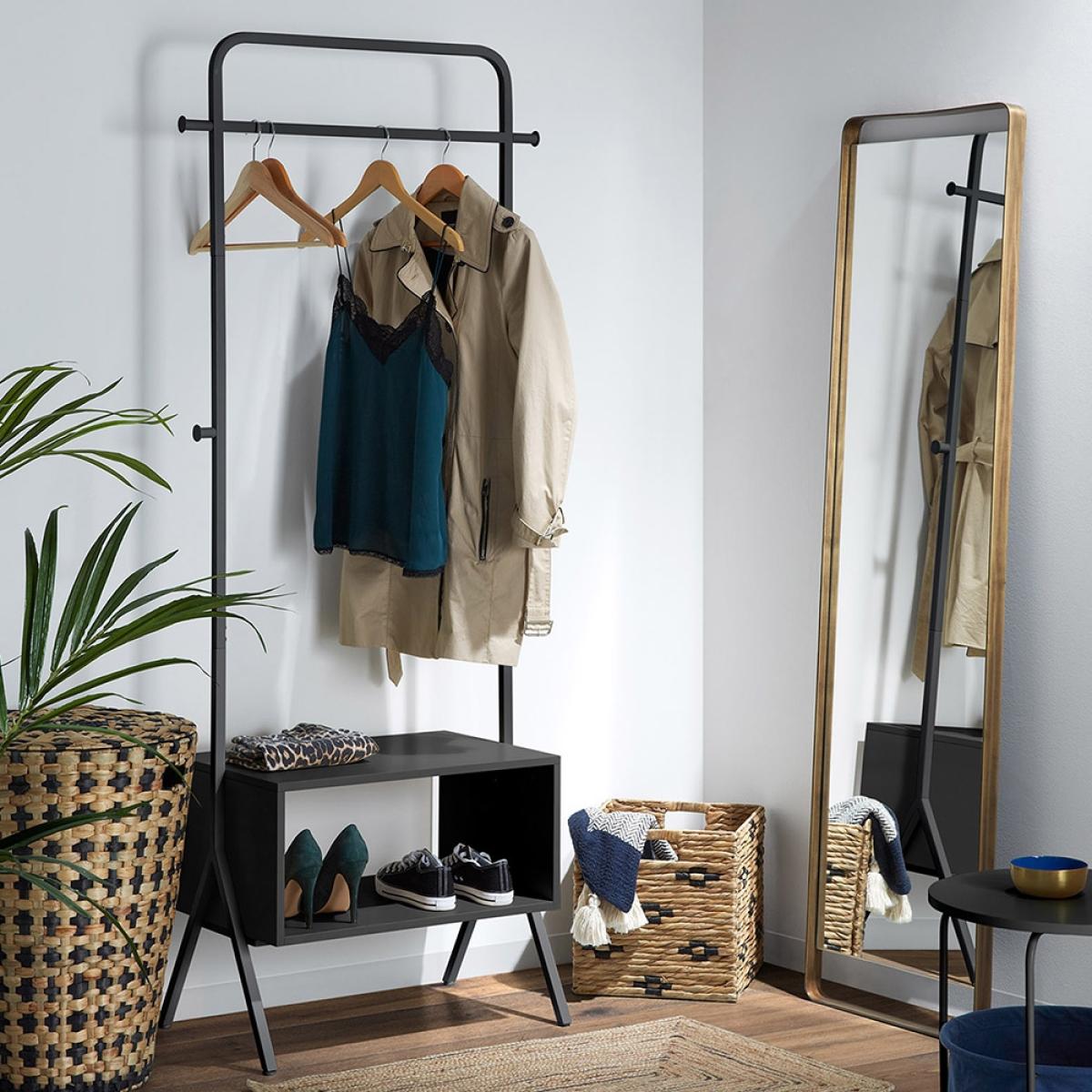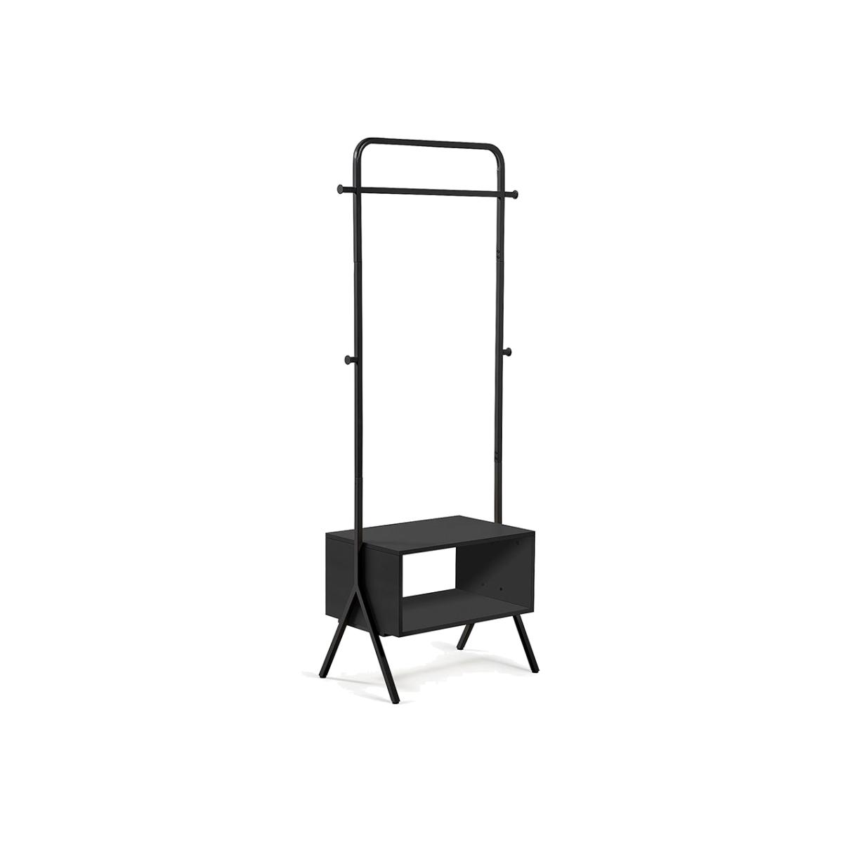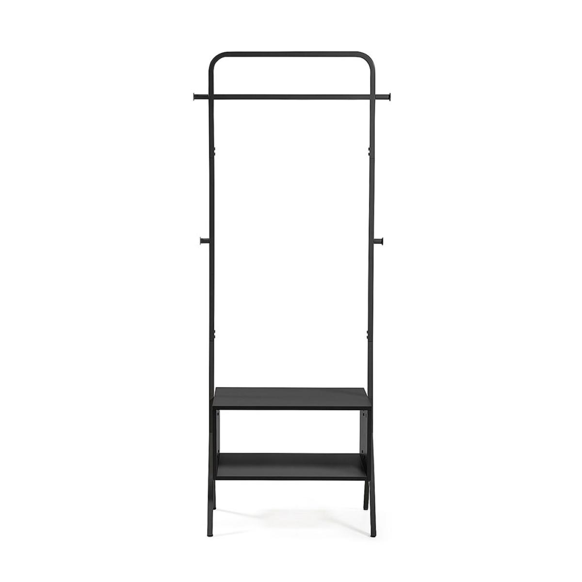 Keep jackets, bags and shoes organised with the Bently Coat Stand from La Forma. Designed with a small footprint, it would be perfect in the hallway, porch or even the utility room. Stow shoes and boots in and on top of the shelf and add a set of clothes hangers for your collection of coats. Including hooks on both sides, store handbags and backpacks off of the floor and prevent tripping on your way out! Made from steel with a black finish, this sturdy addition will stand strong for years to come, not to mention it's easy on the eye! With other industrial style designs available from La Forma, give your home a little refresh!.