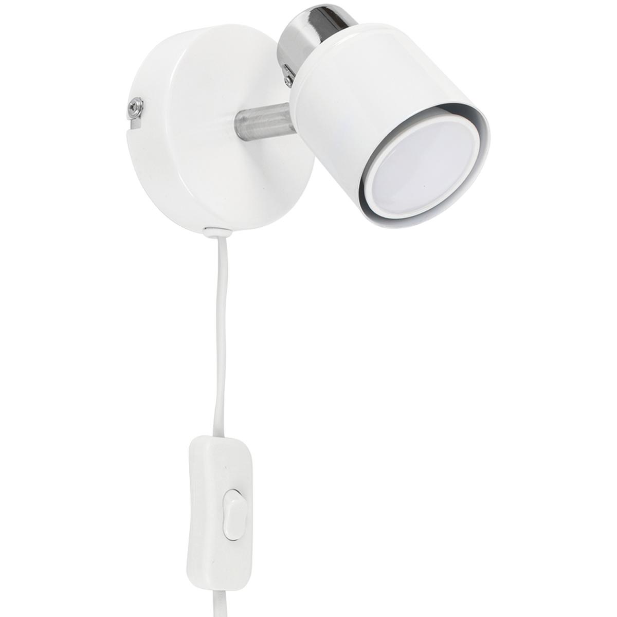 A pair of wonderful and practical wall ceiling spotlights which would be a handy addition to bedrooms, living rooms, lounges and kitchens. These elegant white and chrome lamp lights are equipped with a cable, plug and onoff switch, meaning that there is no need for annoying wiring, hiring an electrician, or fiddly DIY. Simply plug into the mains once fixed to the wall, and enjoy! Ideal as an alternative for bedside desk lamps, living room reading, writing and craft lights and viewing recipes in the kitchen with ease. The adjustable heads enable you to direct the light source to exactly where you want it. The ideal bulbs to use with these products are 2 x 50w GU10 halogen bulbs - not supplied.