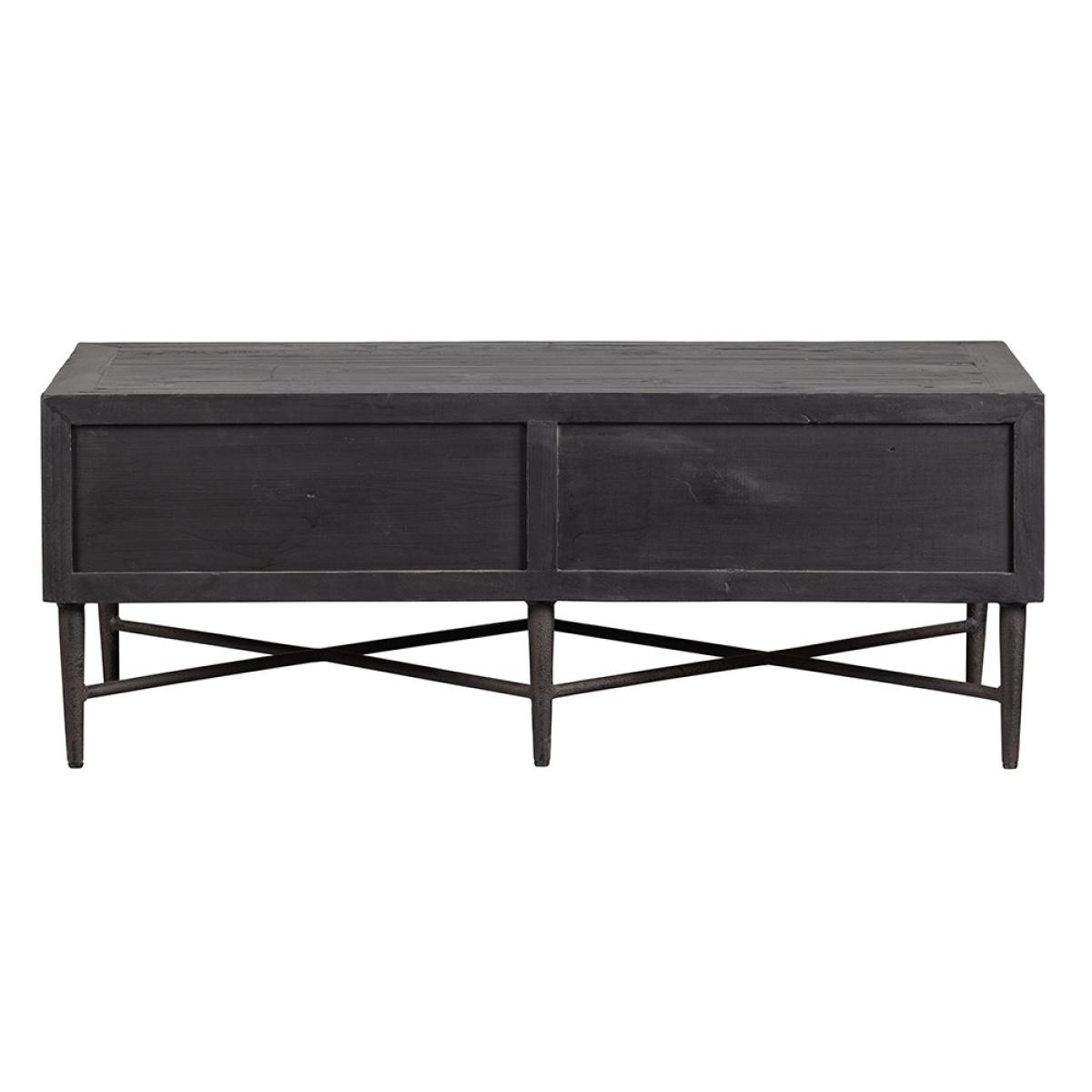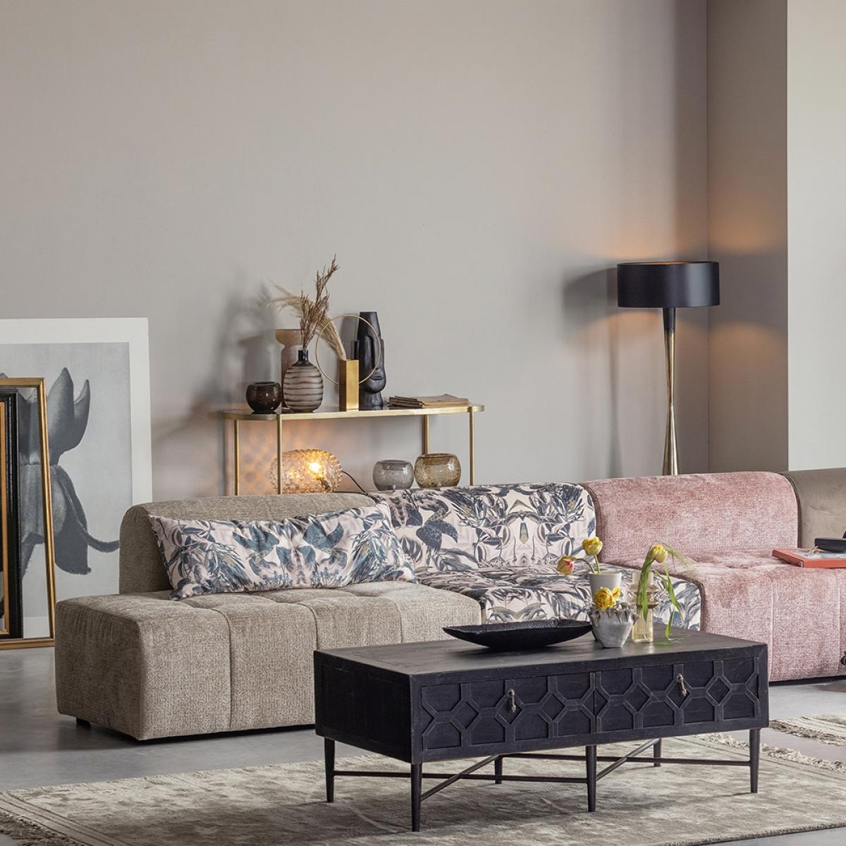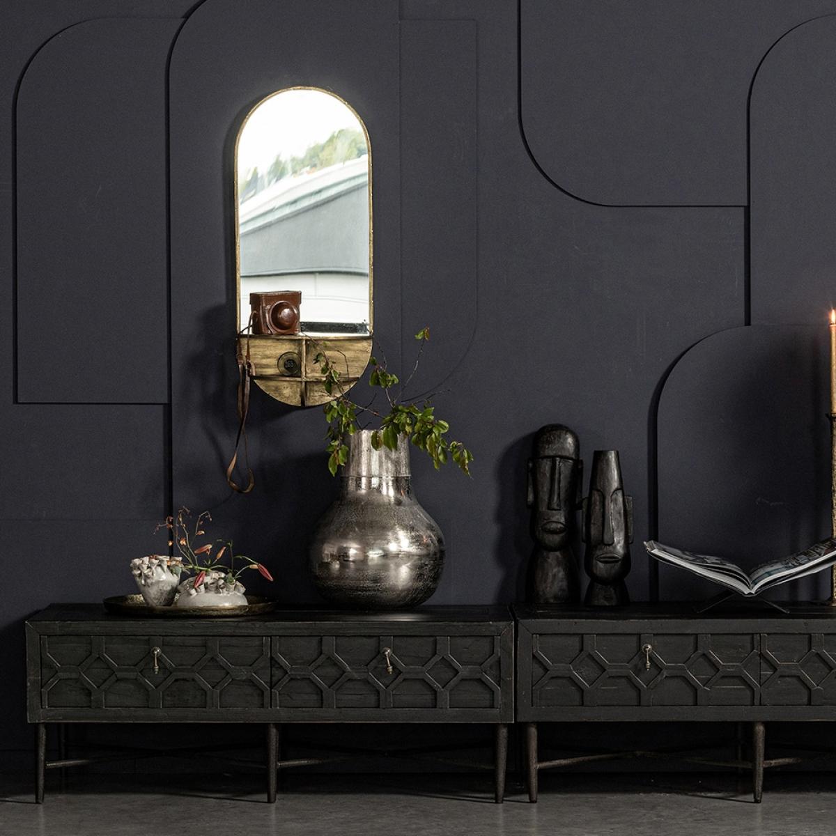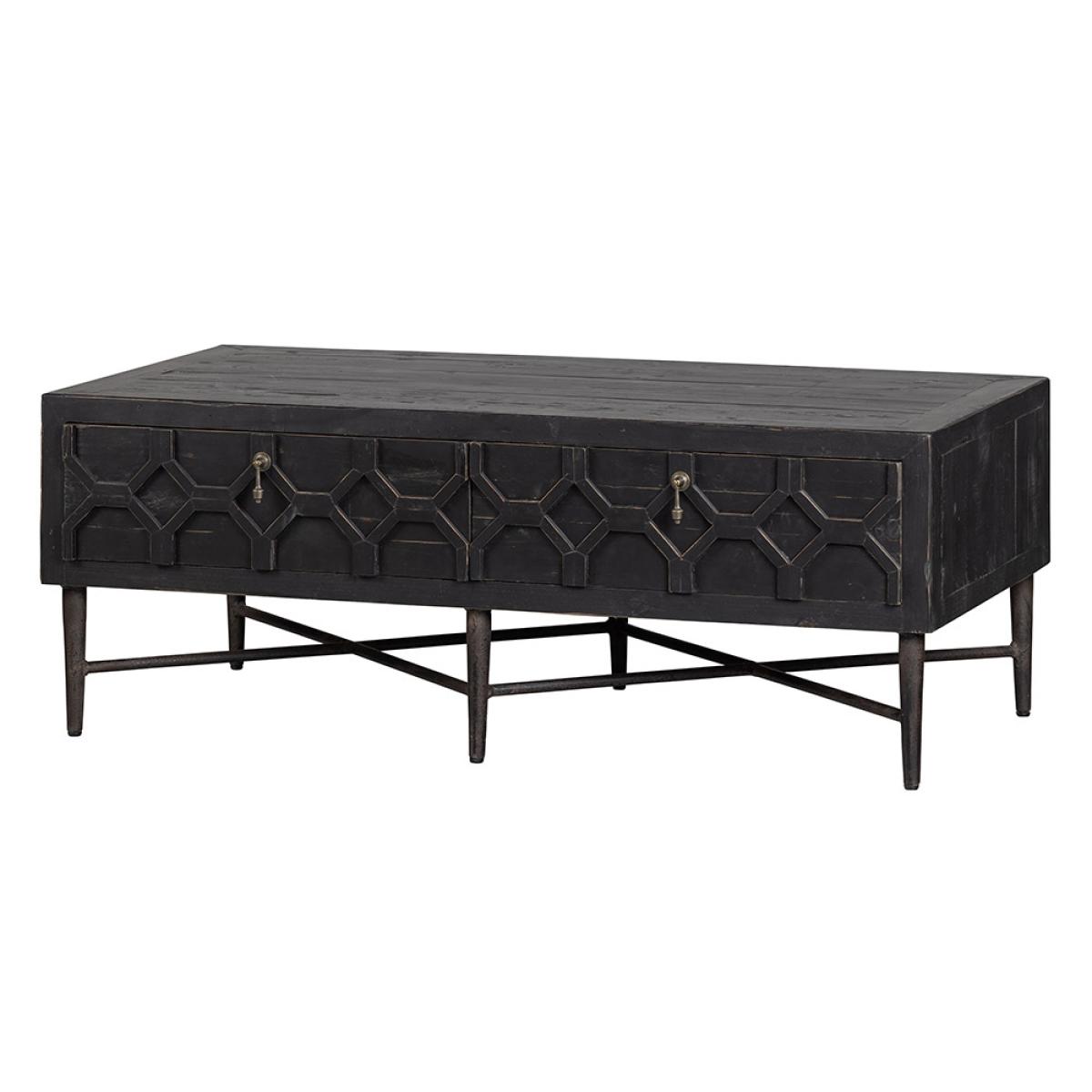 Part of the Bequest collection, completely transform your living room with this stunning table! The distressed nature and carved details of the BePure Home Bequest Coffee Table will give your space character and add interest to your coffee catchups and afternoon tea breaks. It's certainly a conversation starter! Manufactured from pine with a black antique finish, the two drawers feature a gorgeous decorative pattern whilst the iron legs have been given a dark rusty finish. With brass handle details and natural wood interiors, pair yours with matching accessories to complete the look! Imagine a couple of brass candlestick holders a matching vase and a storage tray on this beauty.