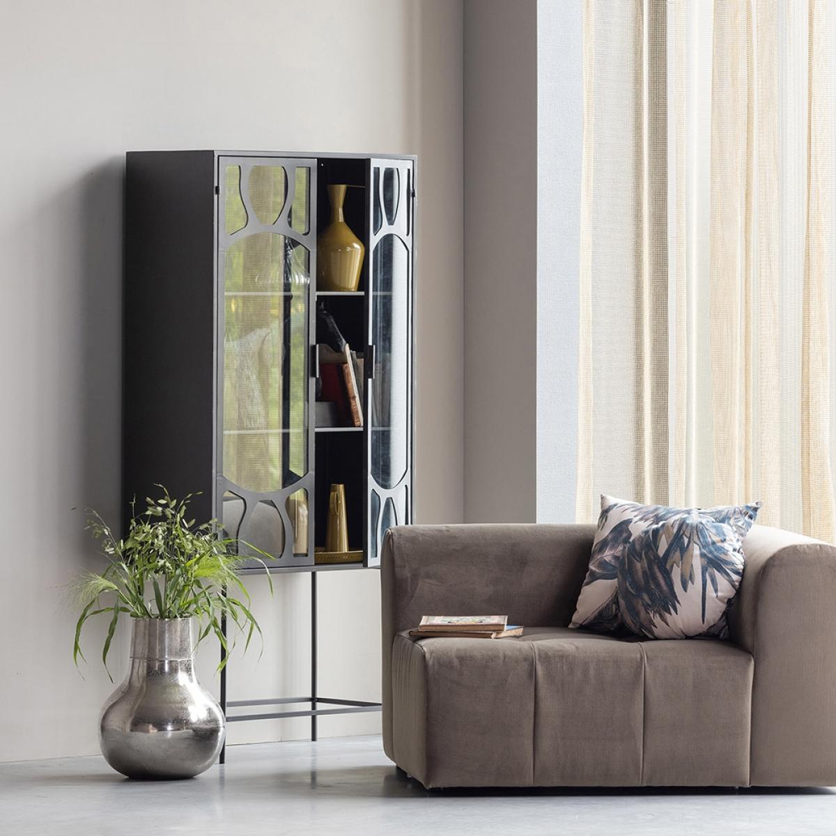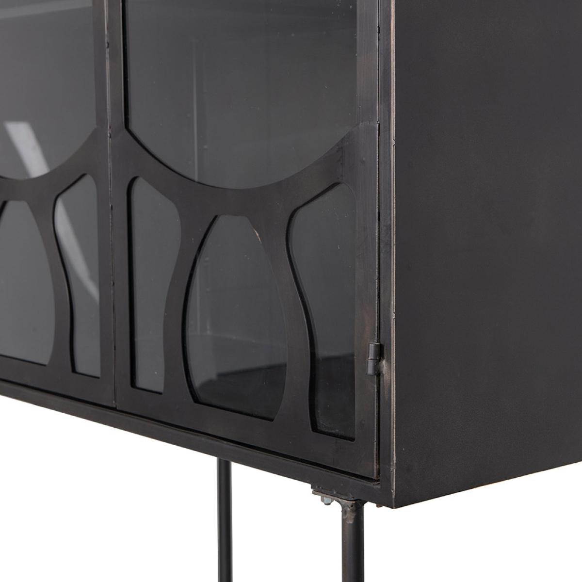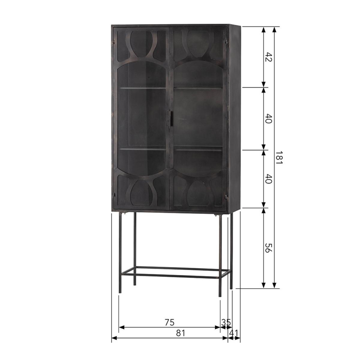 Don't hide your household favourites away in any old cupboard. Show them off for all to see with theBePure. Home Gracious Display Cabinet! Raised off the floor and as though it's floating; the slim, metal cabinet is at the ideal height for you to access your treasures. The decorative metal and glass doors perfectly frame your collection and with a black weathered finish, each piece will standout against the dark backdrop. Behind the magnetic closing doors, 3 spacious compartments are waiting for you to arrange your crockery, glassware, books and decor any which way you like. Now. Which of your pieces will get pride of place?.