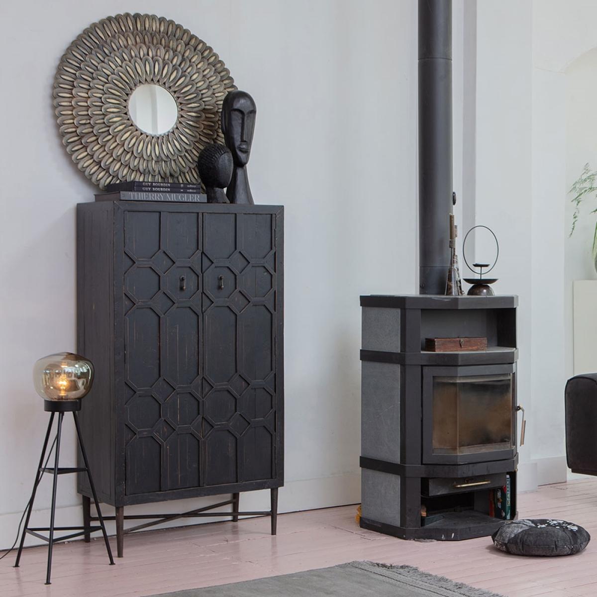Add a vintage feel to your home with the Bequest Cabinet from BePure. Home, it is sure to be a statement piece wherever it is placed. Manufactured from pine with a black antique finish, the two large doors feature a gorgeous decorative pattern whilst the iron legs have been given a dark rusty finish, oh this cabinet really is a stunner! With three shelves, there will be ample space to keep all your bits and bobs stored neatly away. Ideal in the living room, dining room or even the kitchen, store tableware, blankets or spare bedding. The world is your oyster!.