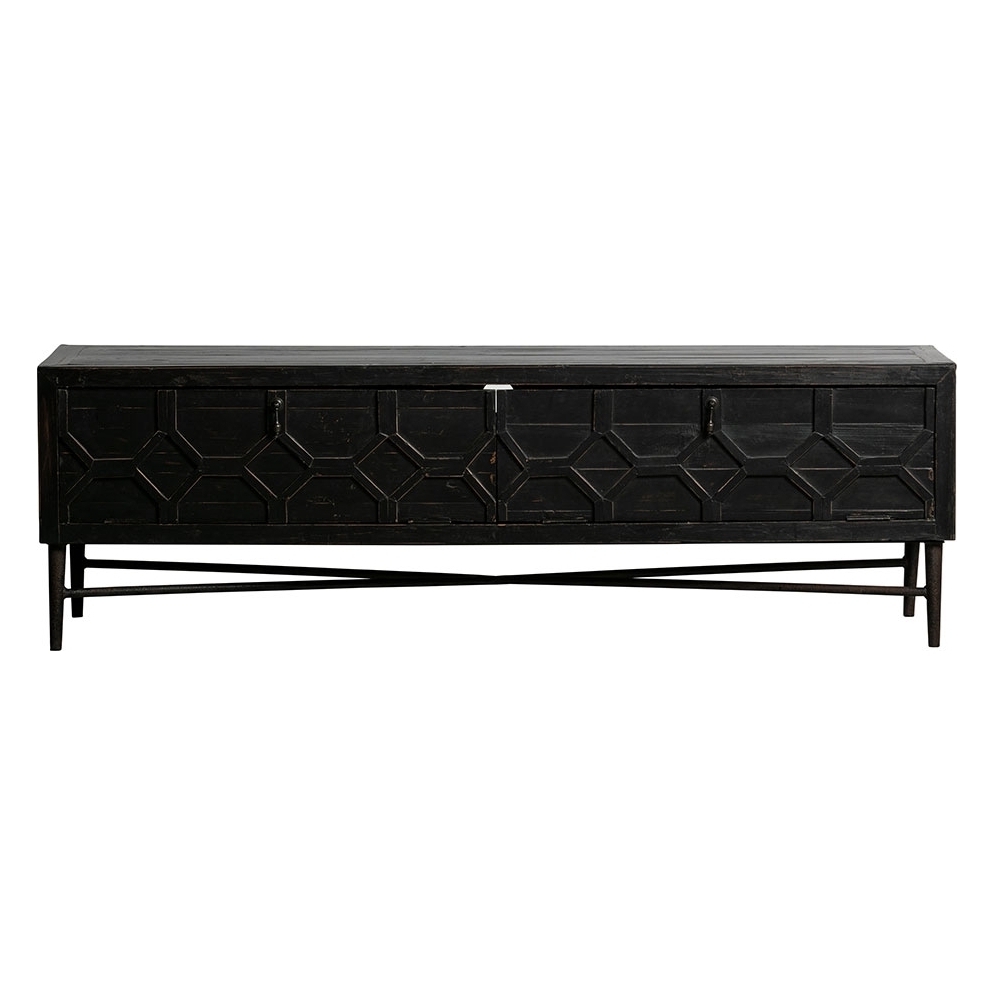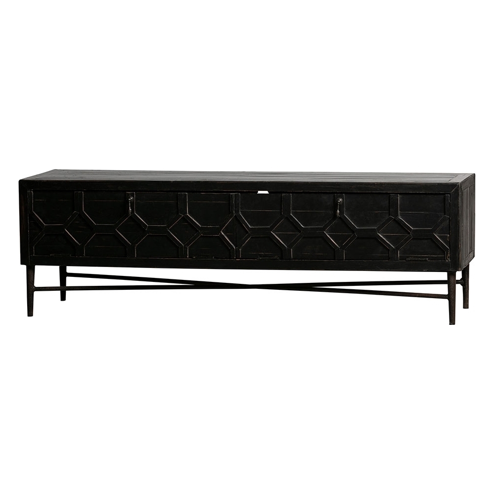 Display your TV in style with the Bequest TV Unit from BePure. Home, your home entertainment has never looked so good! Manufactured from pine with a black antique finish, the two drop down doors feature a gorgeous decorative pattern whilst the iron legs have been given a dark rusty finish. Including an interior shelf, keep that extra equipment and remotes stored out of site. And with a hole at the back, cables will neatly hidden away! With its stunning vintage look, this cabinet is sure to add character to your living room.