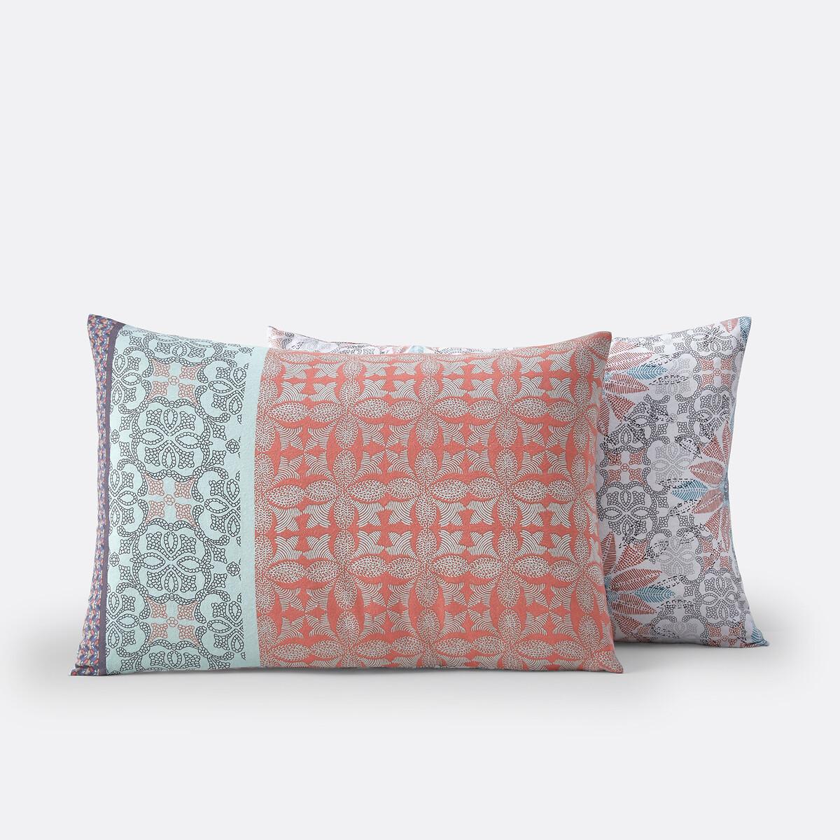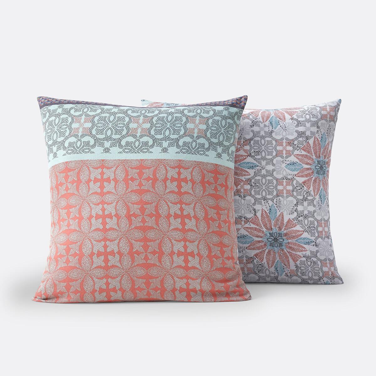 Bergame Printed Pillowcase. Embrace the warmth and softness of this cotton flannel flat sheet as the nights draw in and the weather turns colder: With a pastel, spring-like pattern inspired by cement tiles, you'll feel fresh and bright whatever the season!The cotton flannel is a brushed cotton giving it a felted and fluffy appearance, very soft to the touch. Very thick and warm, it is the ideal bedding to face winter's chill. Product Details • Sack shape • Multiple pattern design • 100% cotton. Renowned for its warmth and comfort, flannel is a great way to tackle winter head on • Excellent colour retention. Care Advice • Machine washable at 60°C • By washing your laundry at 40°C instead of 60°C, you limit energy consumption. Dimensions • 50 x 70cm: Rectangle cover • 63 x 63cm: Square cover • OEKO-TEX® Standard 100. Standard 100 certification by OEKO-TEX® tests textile products for harmful substances via an independent, international label.
