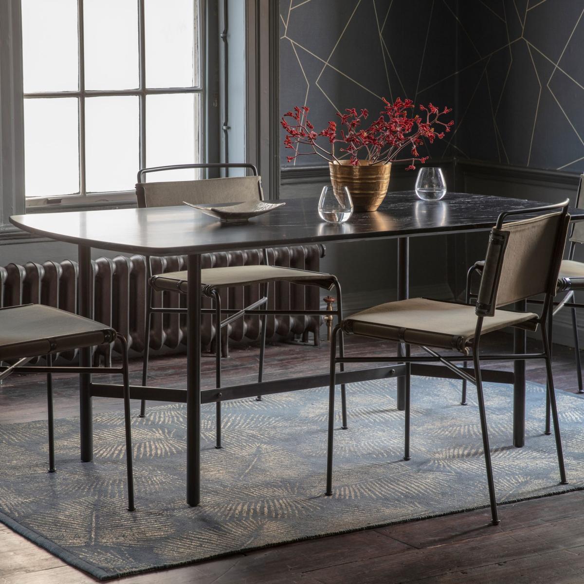 I love this dark acacia dining table for its versatility and modern appeal. Its rich, deep wood finish brings warmth and texture, making it a great focal point in both contemporary and eclectic interiors. It works particularly well in neutral or monochrome settings, where its colour can stand out, but it also complements earthy tones and layered textures. Practical styling tips include layering up with a stylish runner or placing a striking centrepiece, like the gold-toned vase in the image, to add visual interest. Keep the surrounding chairs simple and streamlined to balance the table’s bold presence, and consider pairing it with rugs that add softness without overwhelming the space. It’s a solid choice for those seeking a durable piece that effortlessly elevates the dining area.