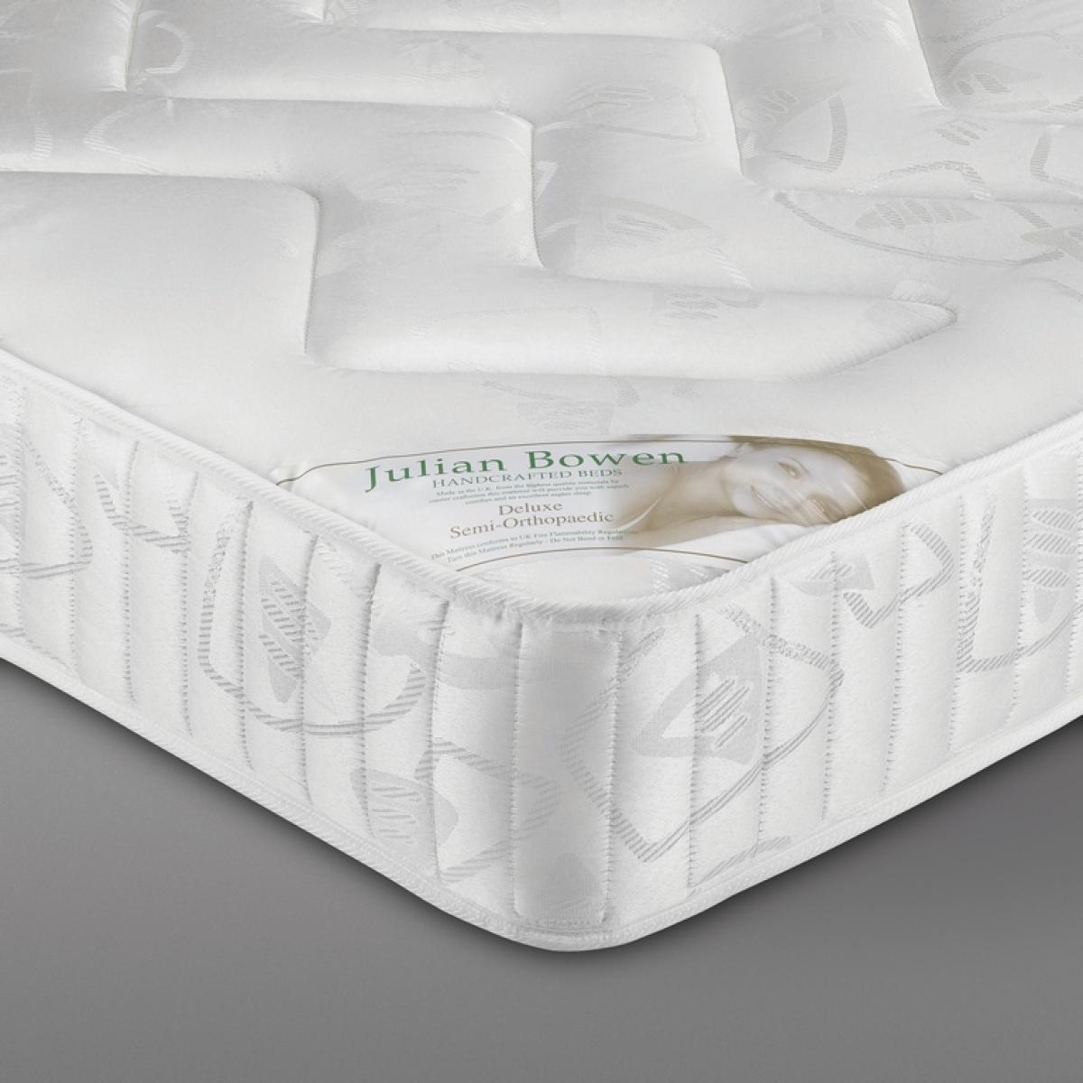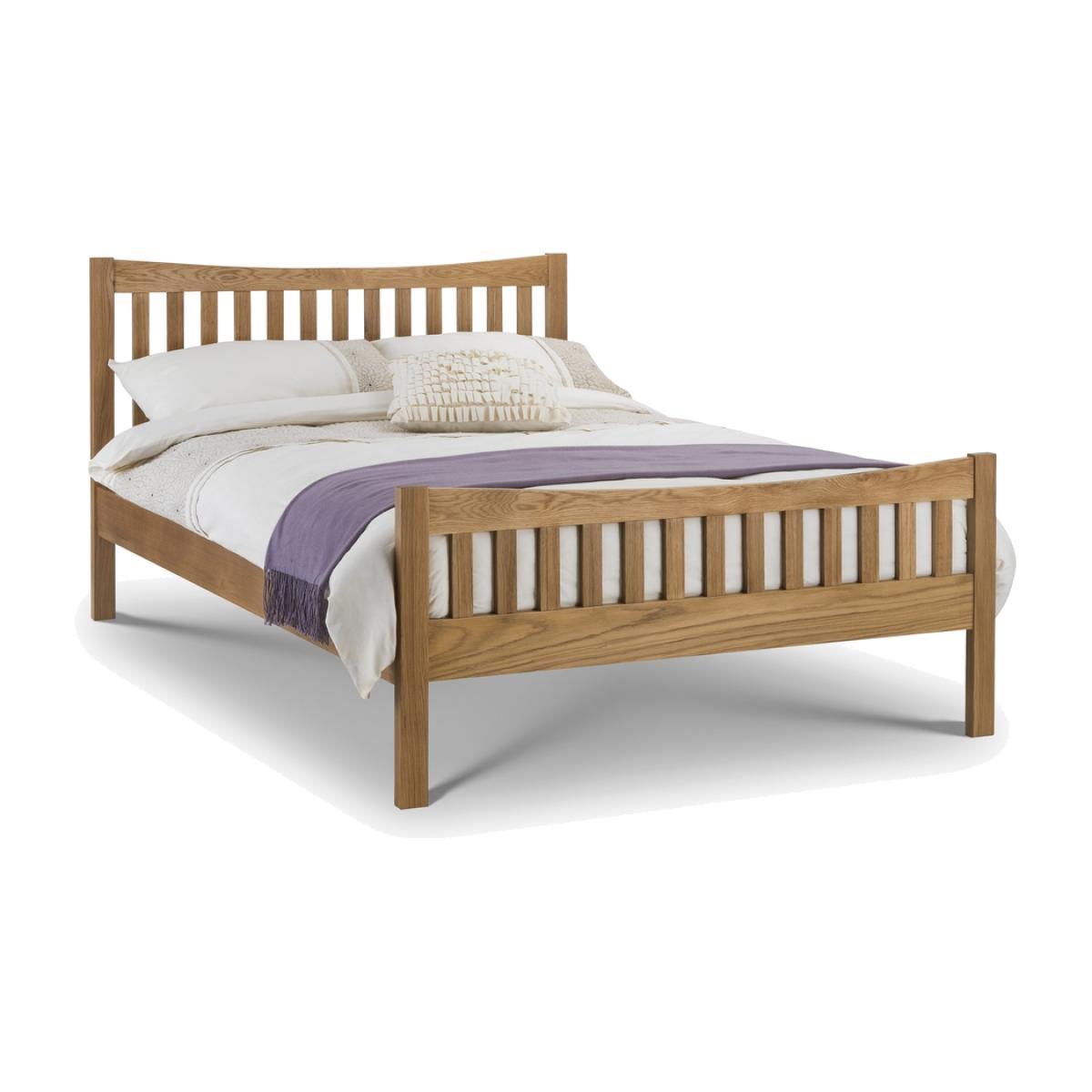 The beauty of the Bergamo bed frame comes from its elegant simplicity. Both the headboard and footend have an attractive wide slatted design which makes a feature of the oak timbers. The posts at each end are joined with a subtle curve. The frame is crafted from solid oak - a timber much renowned for its inherent strength and complex grain pattern. The base is sprung and slatted which distributes weight very effectively, maximising the lifetime of the mattress. The frame accepts all standard mattresses. We recommend the premier mattress as a great accompaniment to the frame. The Deluxe semi-orthopaedic provides excellent support, longevity and comfort. The stitch quilted mattress is upholstered in quality Belgian damask fabric and the edges feature rod support while the sides feature air vents at regular intervals. The Deluxe mattress is sprung with Bonnell springs which provide excellent support by distributing weight evenly across the sleeping area. High quality spring insulator padding and polyester filling increase comfort and maximise durability further.